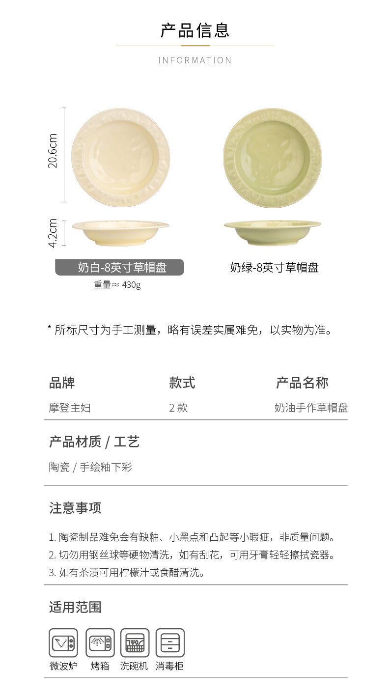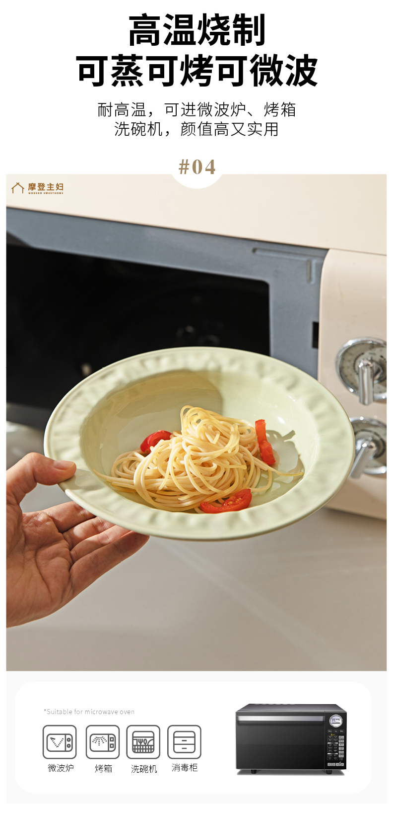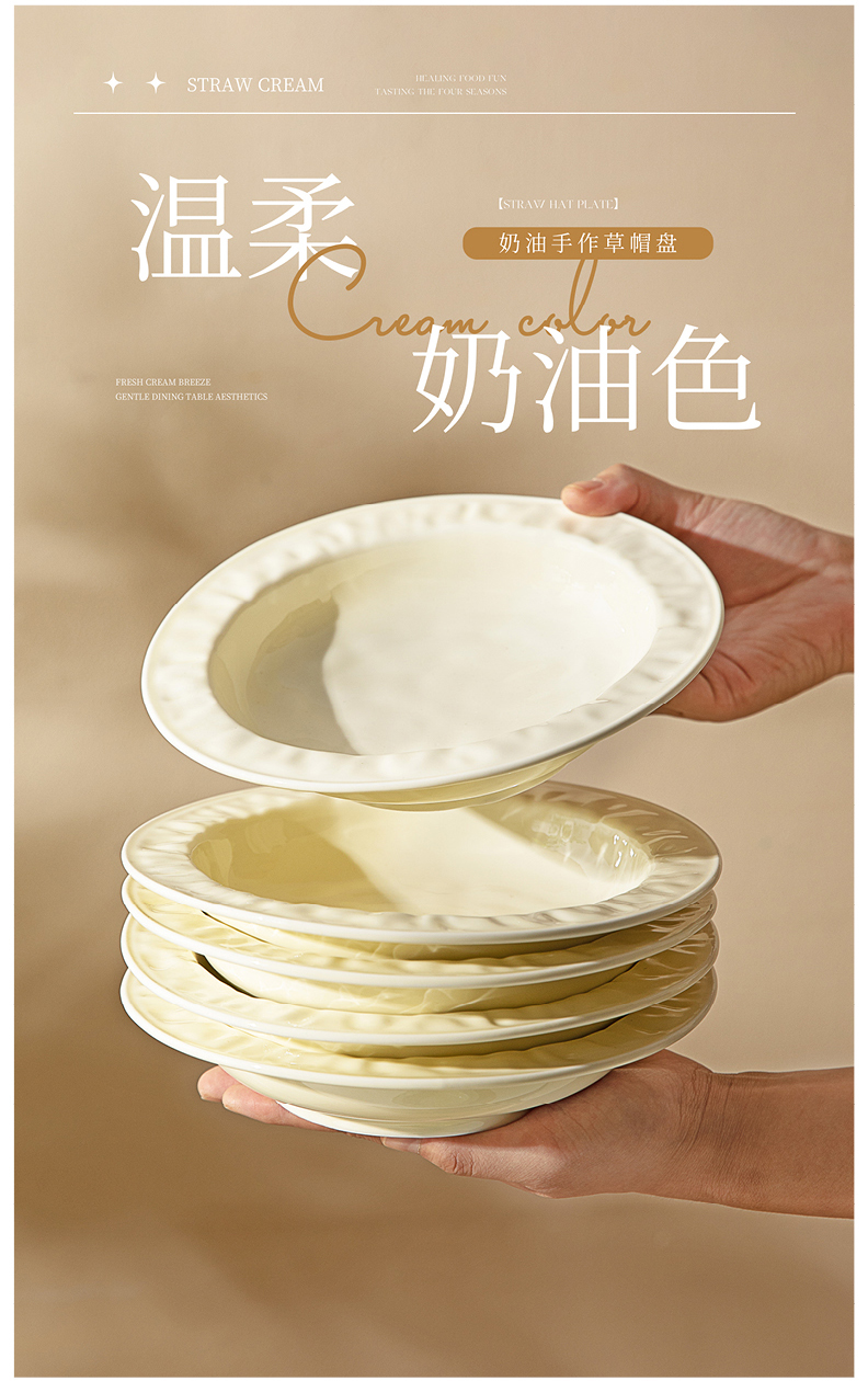 摩登主妇陶瓷盘子意面深盘家用菜盘高级感2024新款草帽盘西餐餐盘