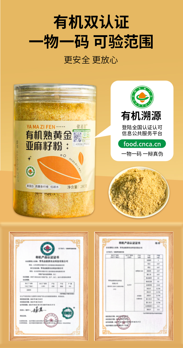 【72小时发货】有机熟黄金亚麻籽粉 280g/罐 开盖即食