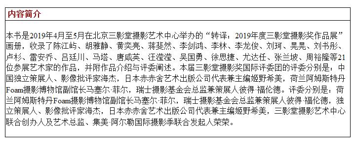 转译:2019年度三影堂摄影奖作品展 单反摄影艺术构图技法入门参考书籍 大师摄影高清作品集摄影作品画册 浙江摄影出版社—浙江摄影出版社