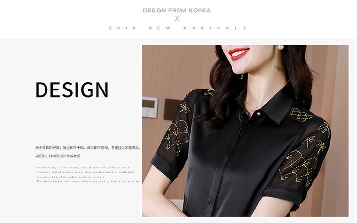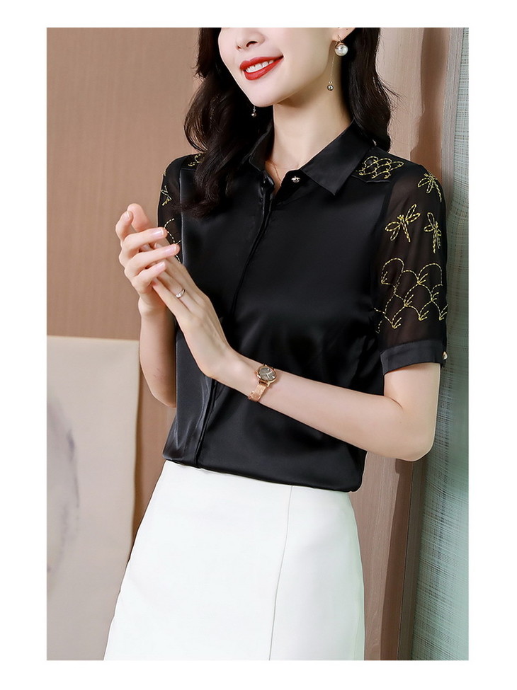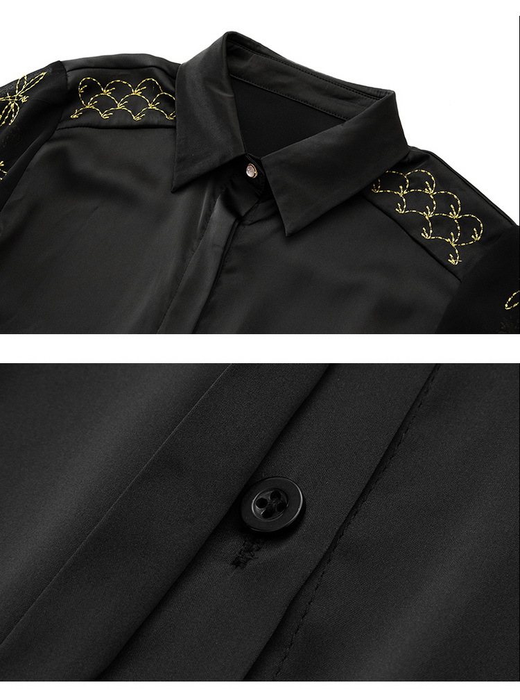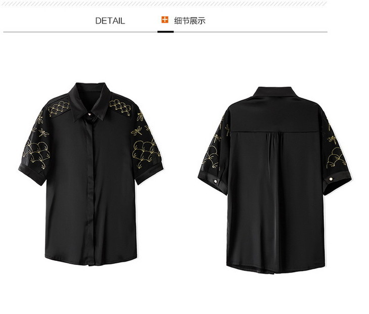 MZ 103923刺绣绸缎衬衫气质复古洋气衬衣
