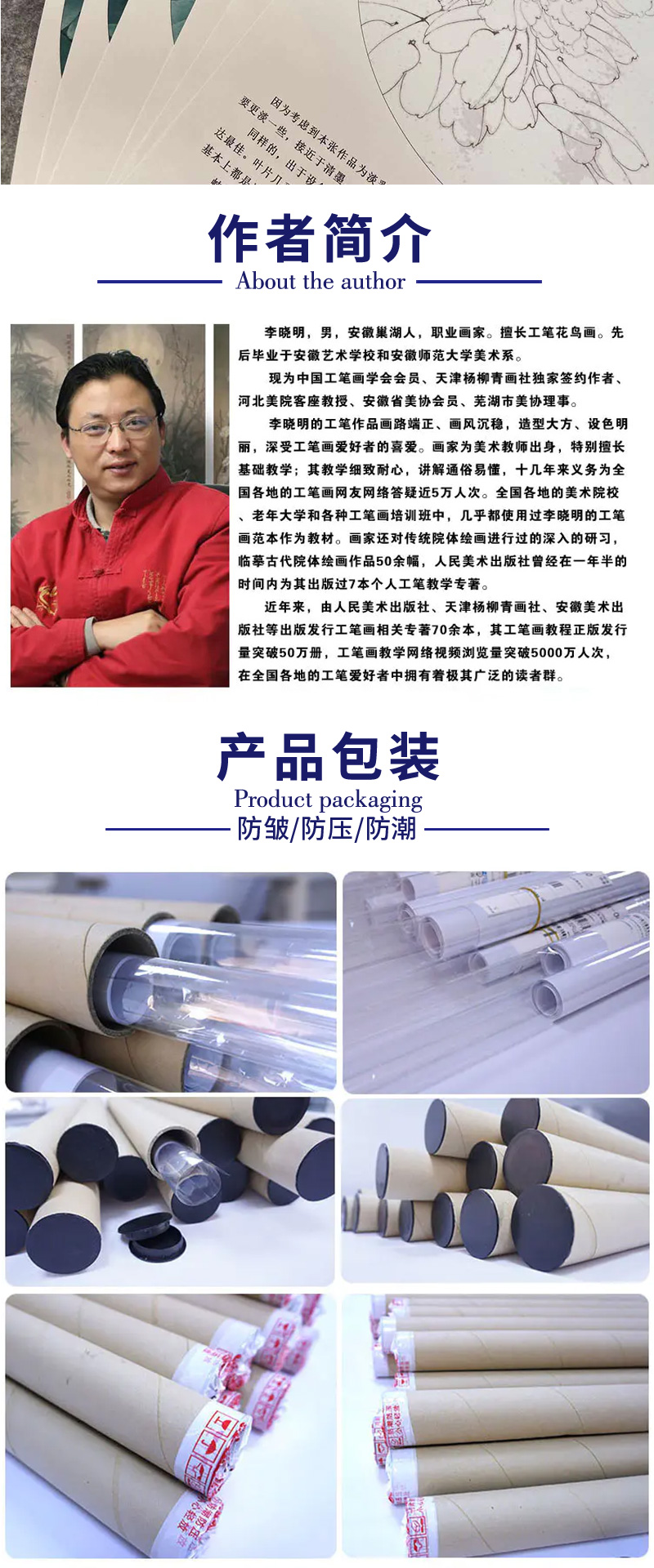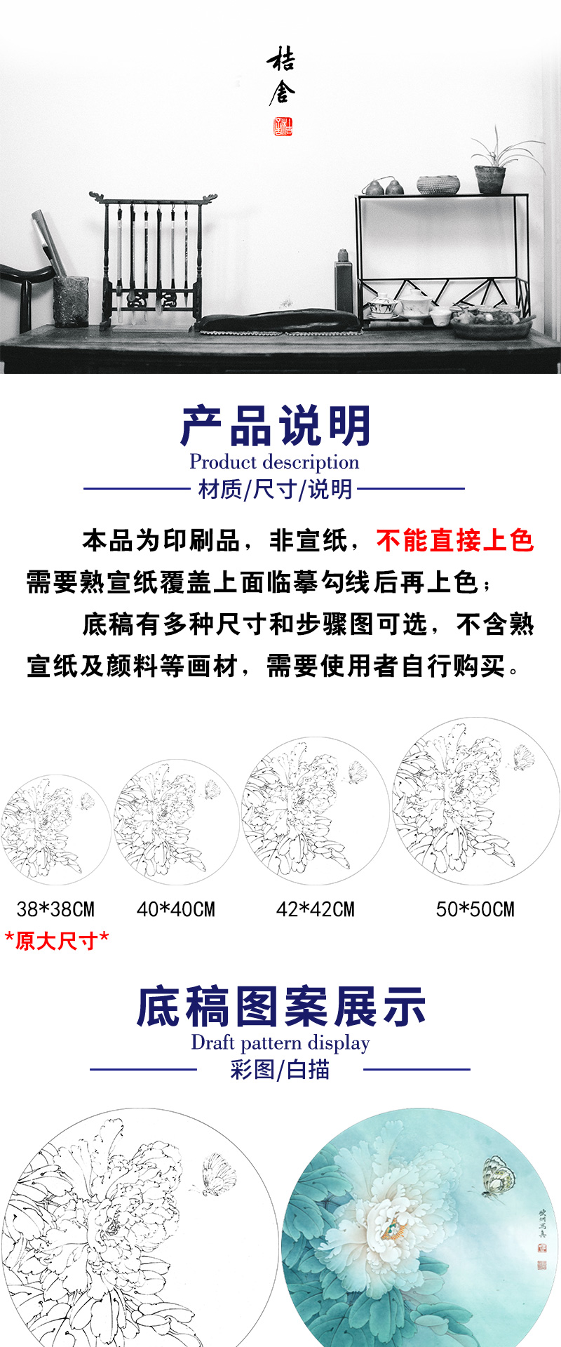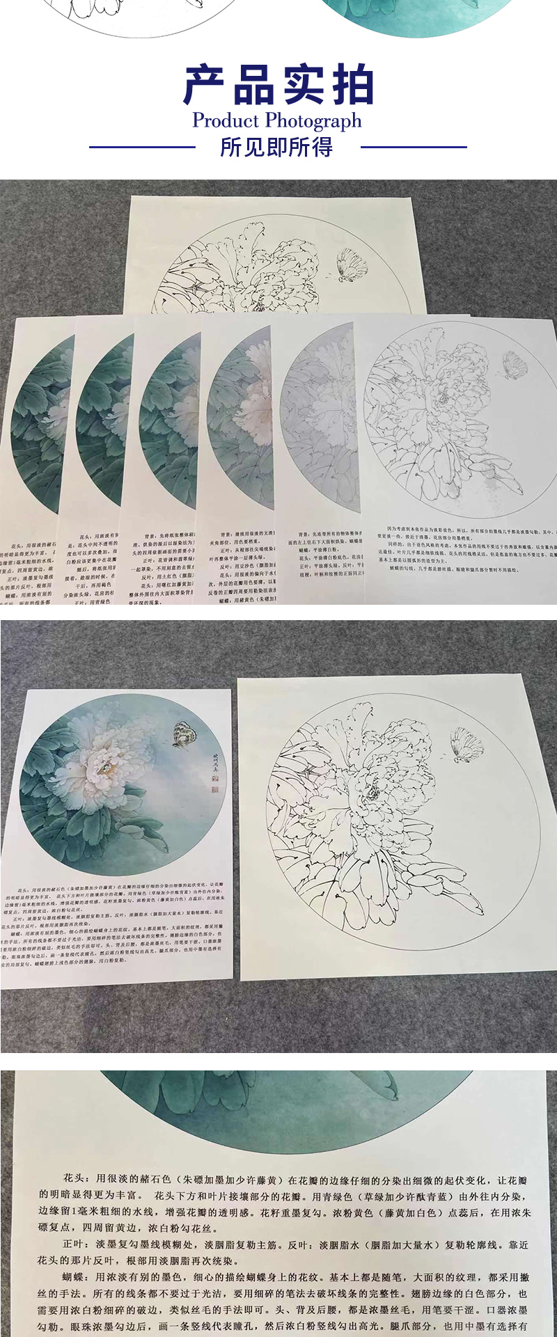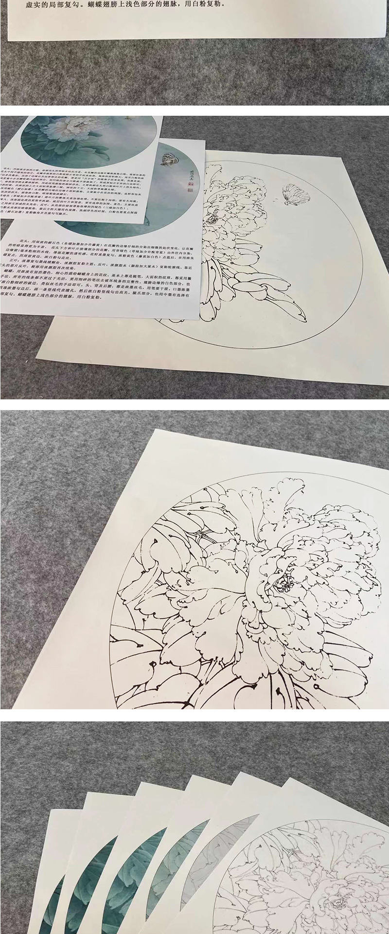 【有步骤、大彩图】李晓明工笔花鸟画白描底稿牡丹花小品《牡丹蛱蝶图》KG15