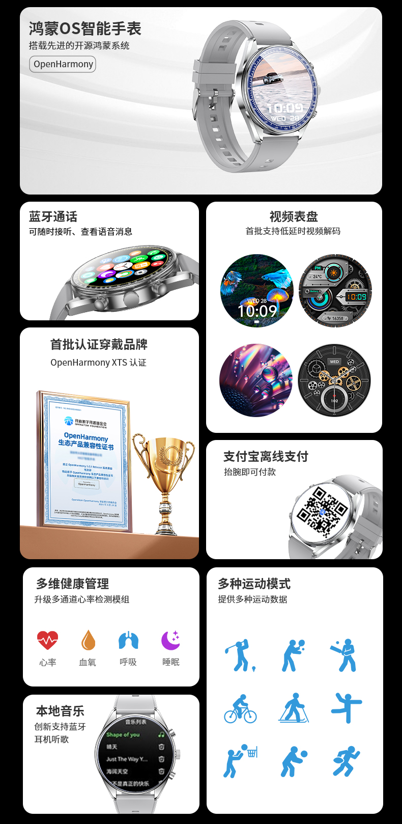 热卖中!!【鸿蒙合作伙伴】塞尔兰斯开源鸿蒙OS Watch 9 Pro智能健康监测手表