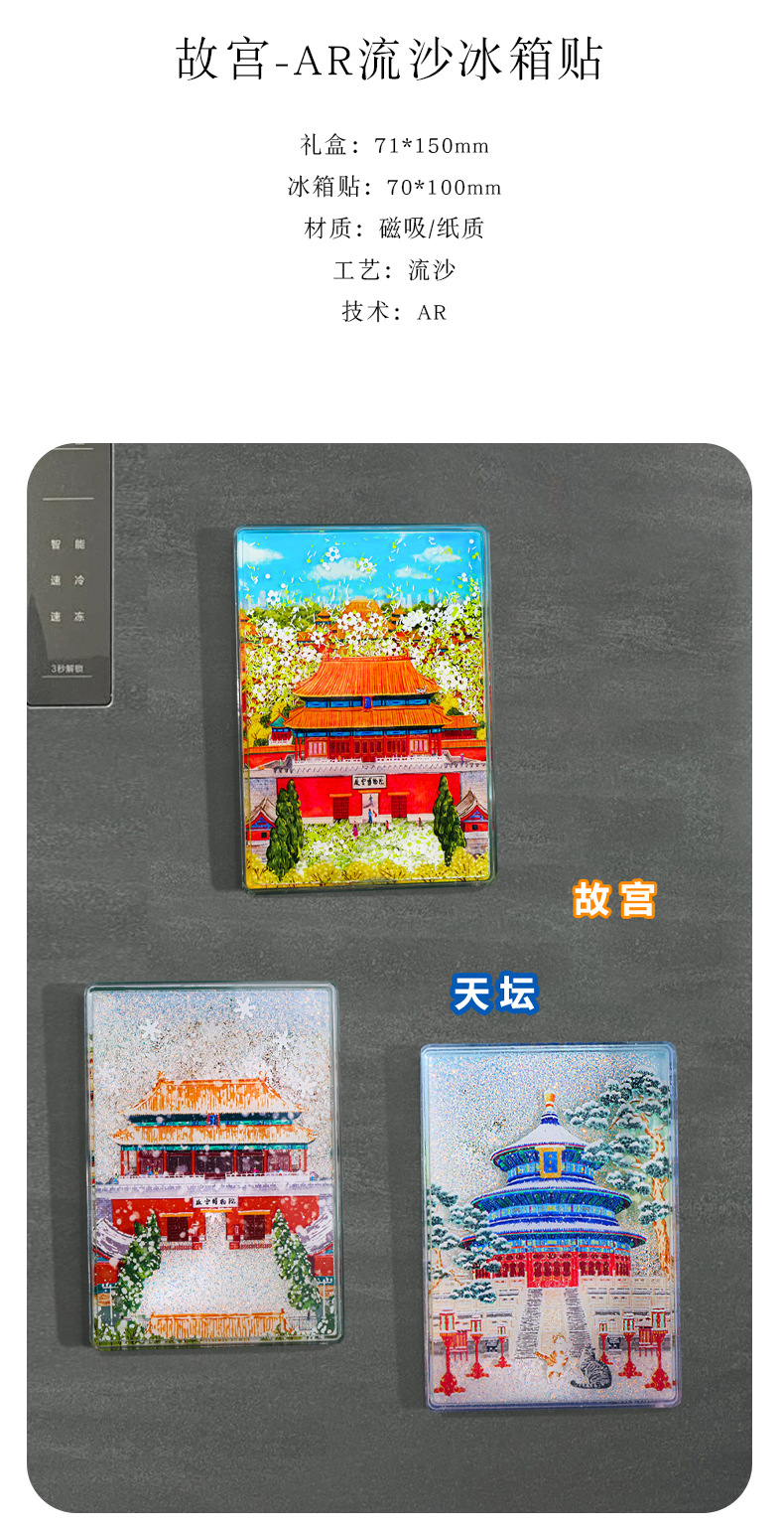 【北京AR流沙冰箱贴】城市磁贴颐和园天坛景区旅游纪念品地标冰箱贴