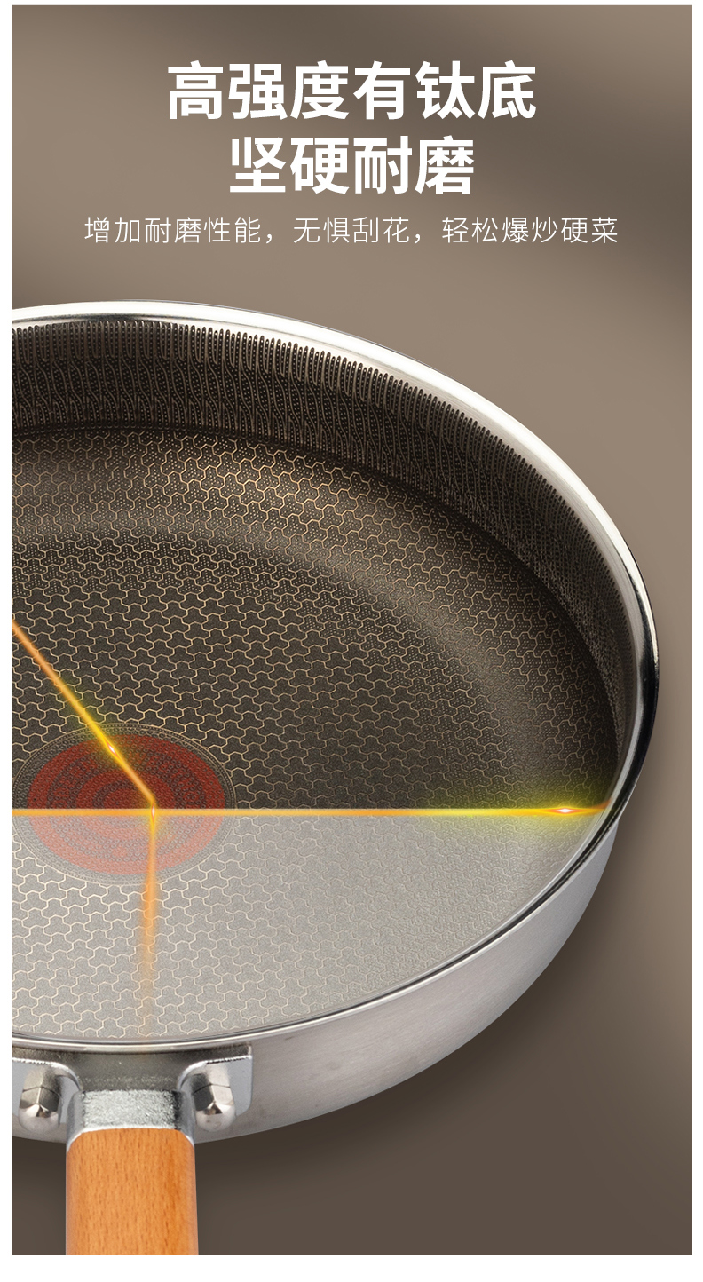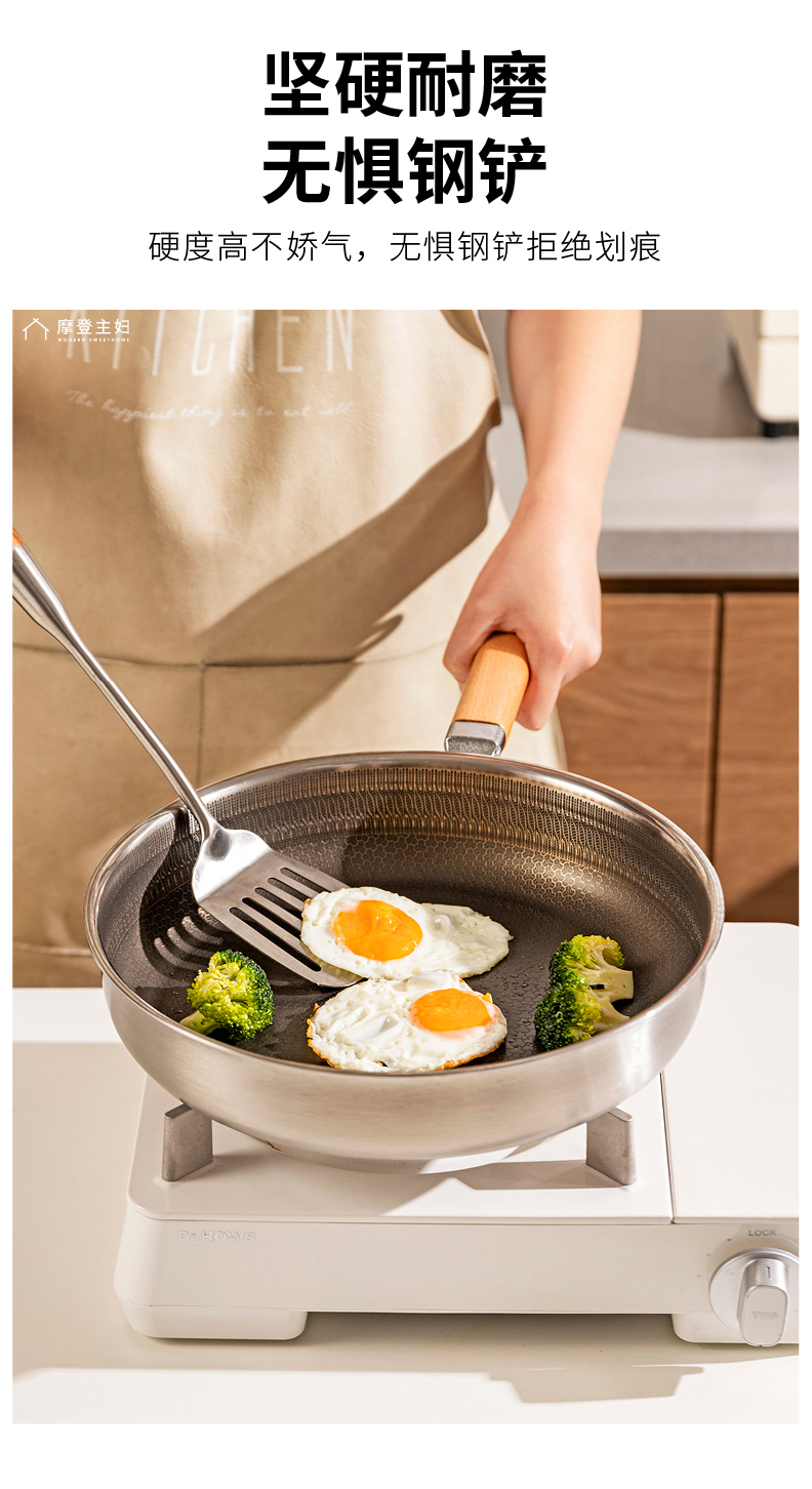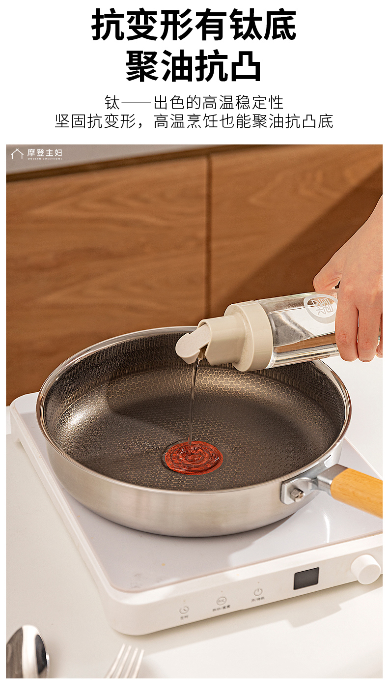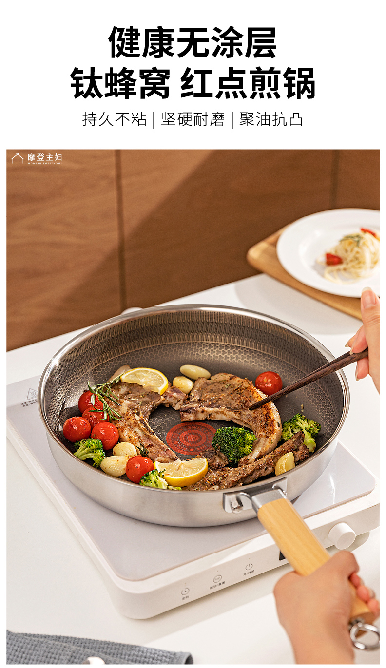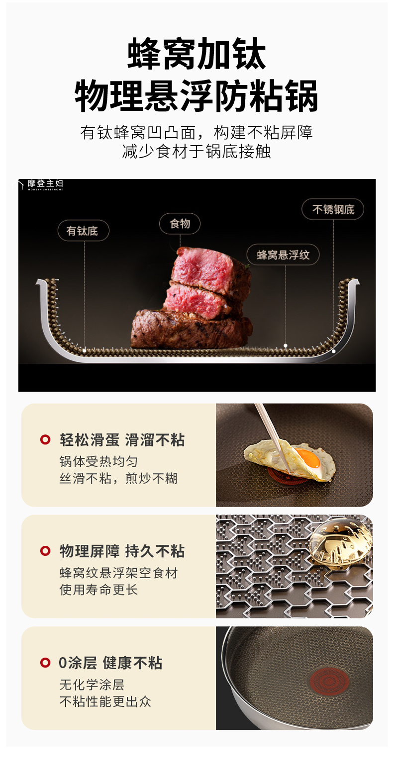 摩登主妇有钛平底锅炒菜不粘锅家用无涂层牛排电磁炉燃气灶铁煎锅