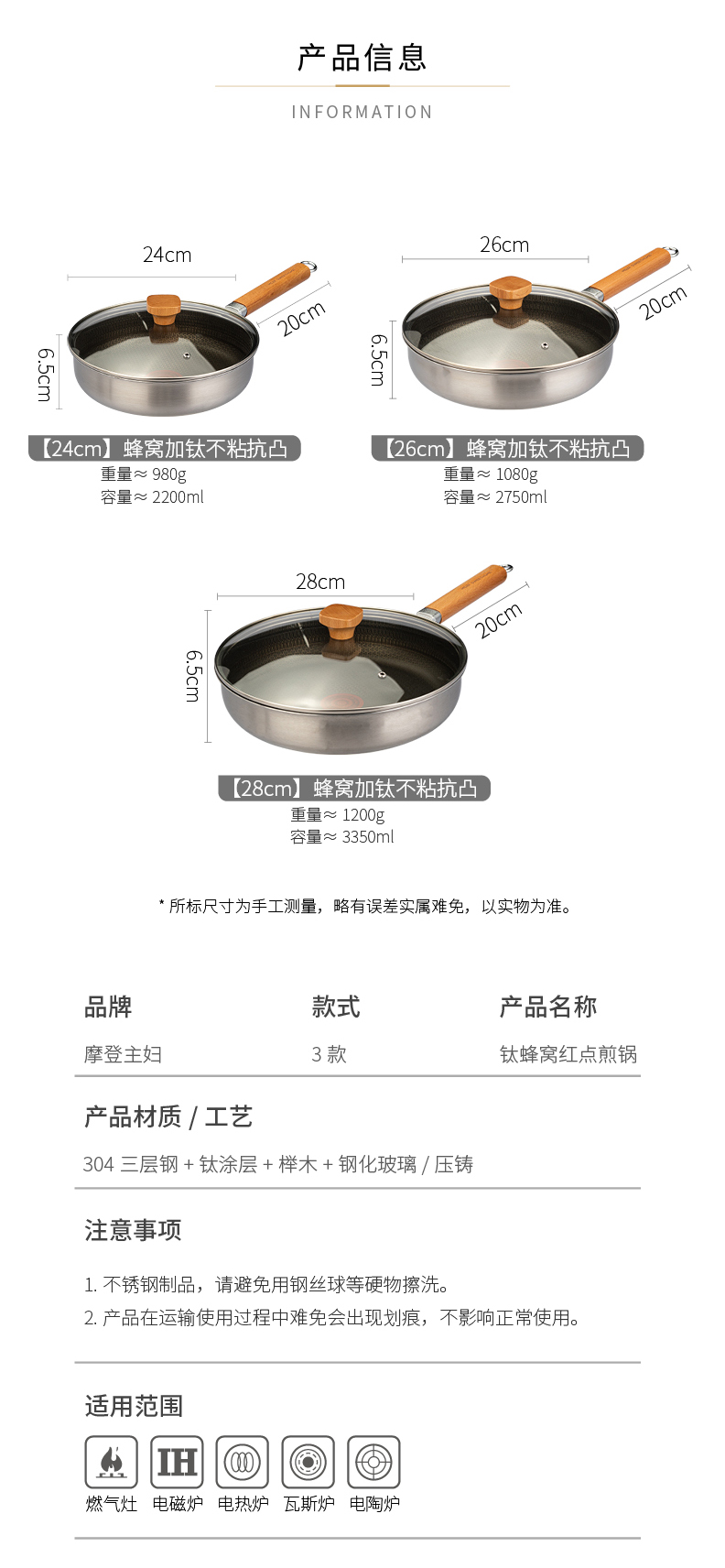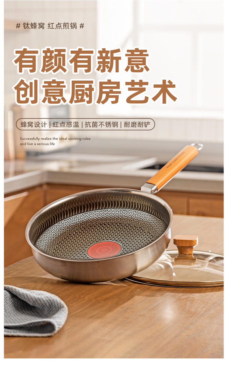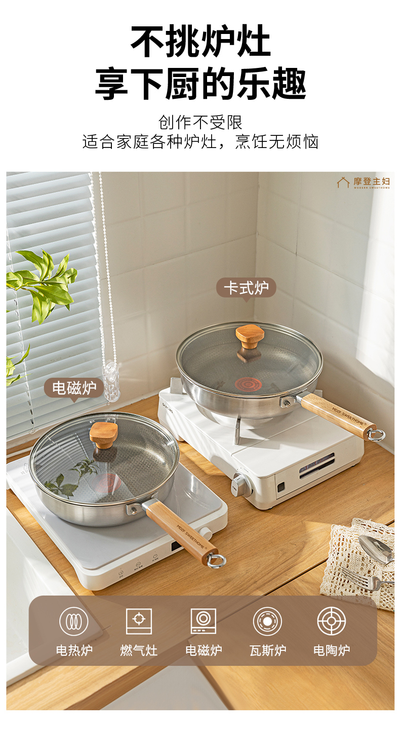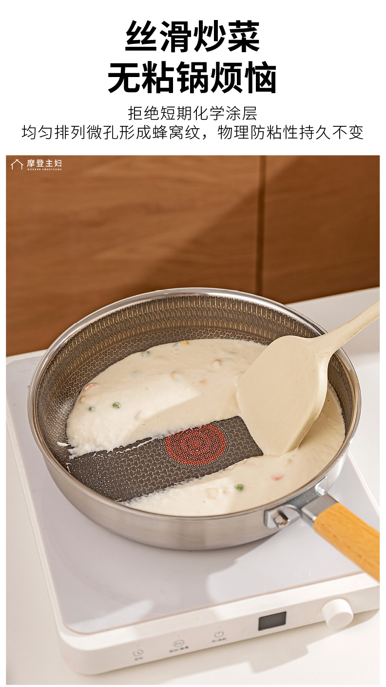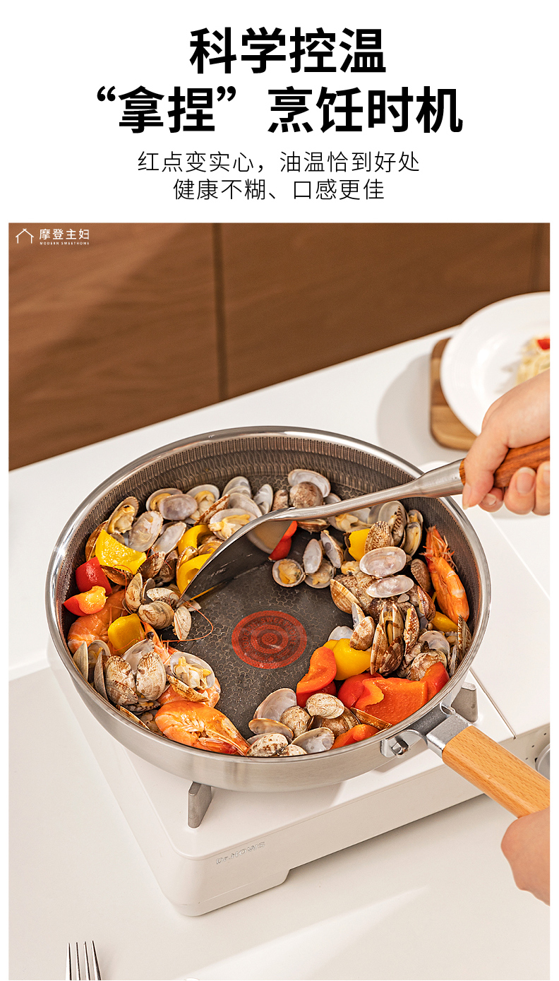 摩登主妇有钛平底锅炒菜不粘锅家用无涂层牛排电磁炉燃气灶铁煎锅