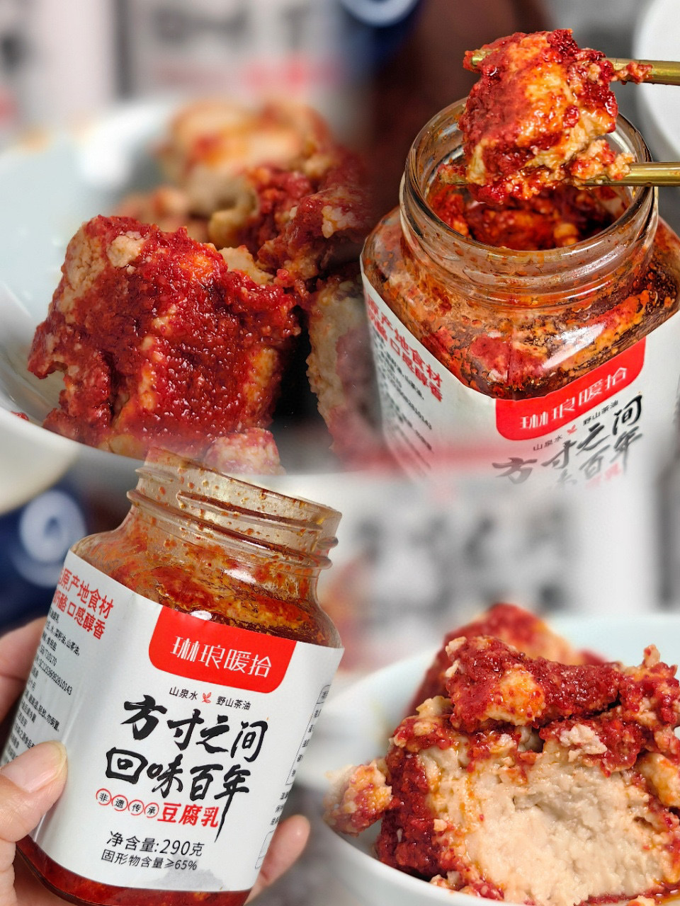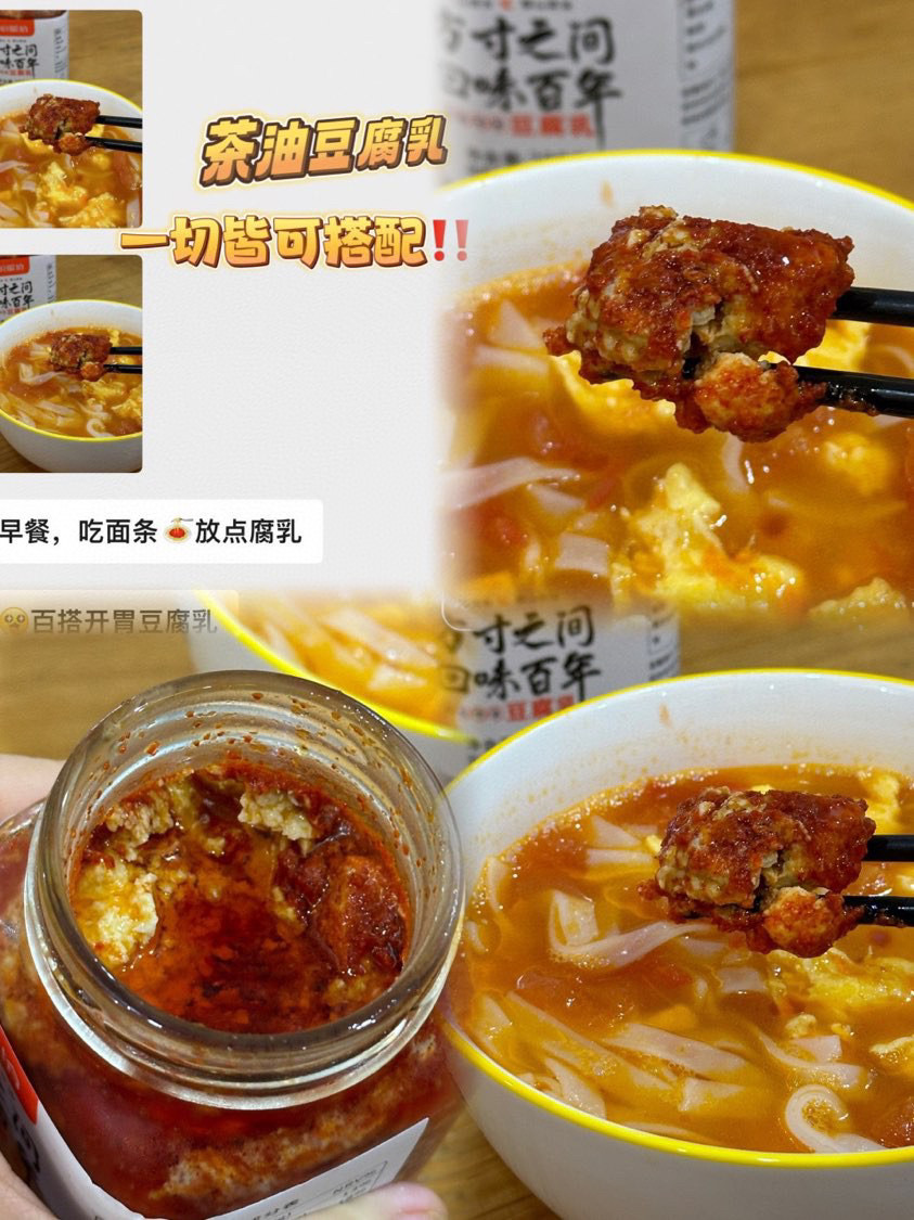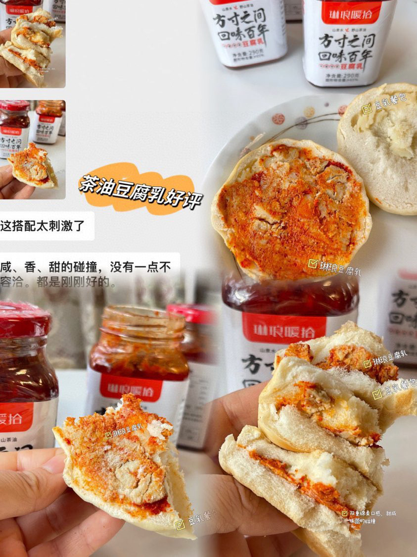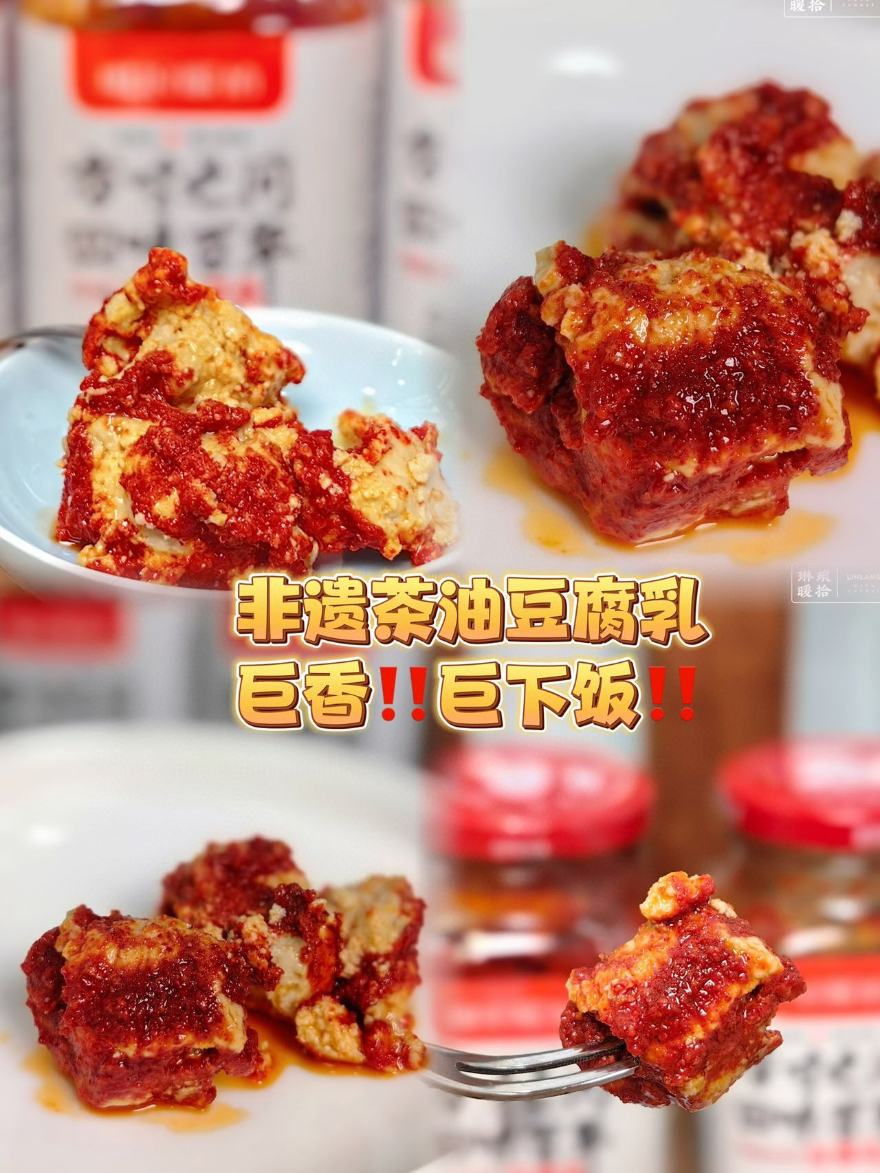 茶油豆腐乳简直是我的拌饭神器!一块腐乳配一碗米饭or粥✔用红油泡过以后的腐乳油光水润,入口绵密又细滑,简直是人间美味,可配米饭,面条,水饺!也可以烧各种硬菜和青菜❗❗❗
