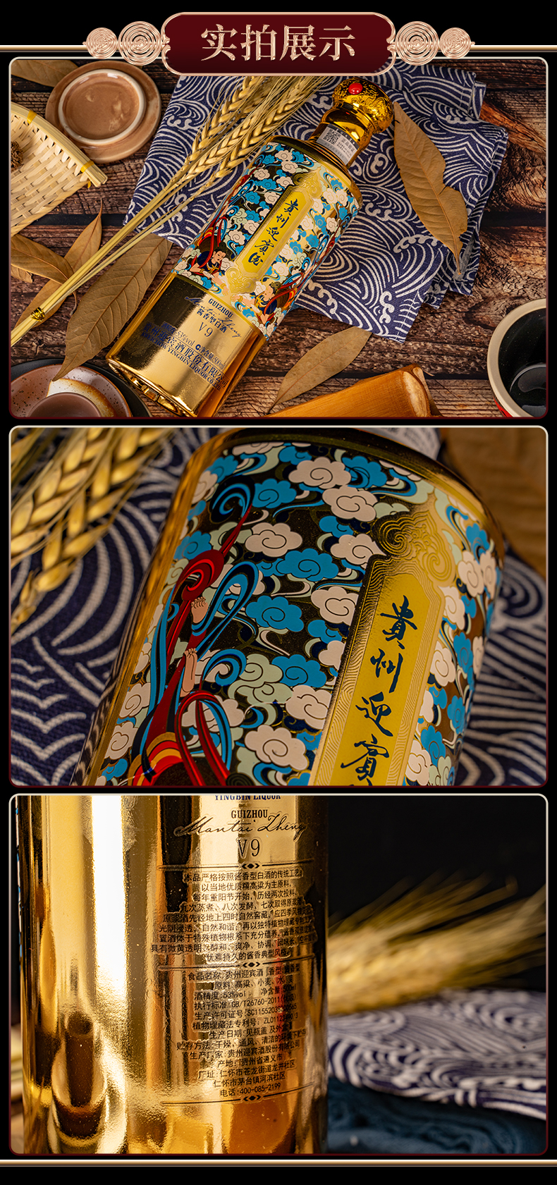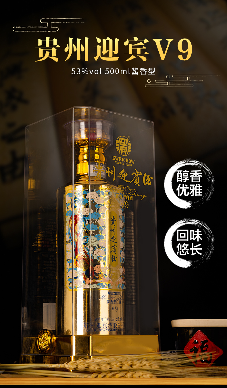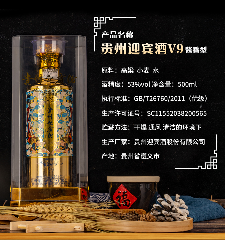 【推荐】贵州迎宾酒 V9 白酒白金御酿酒V9 升级版 53度 酱香型 500ml单瓶装