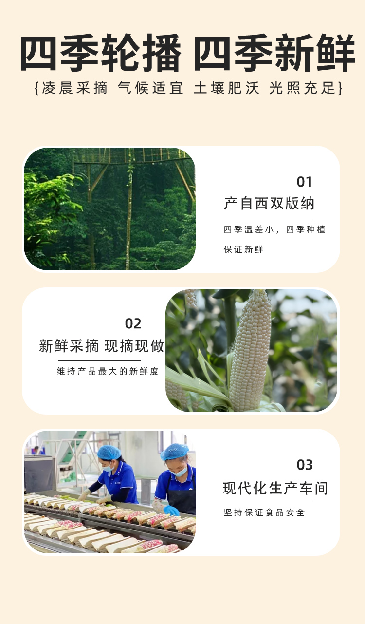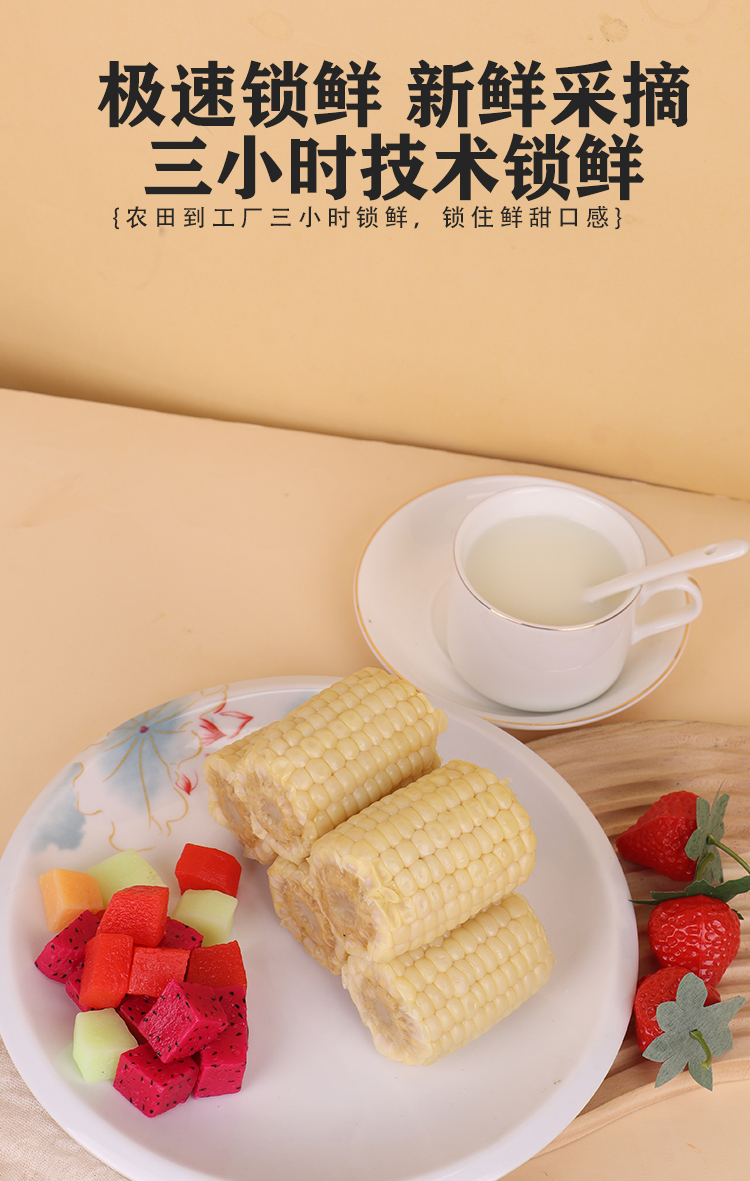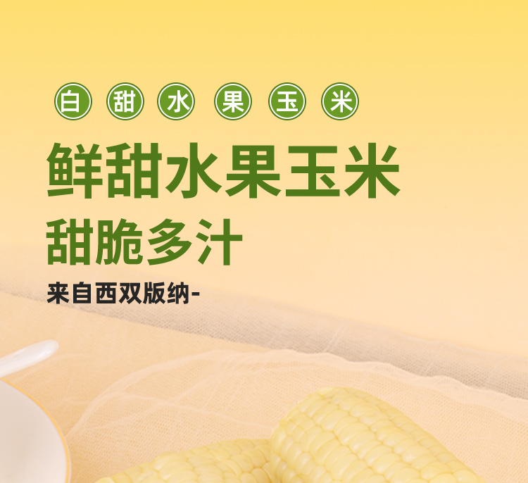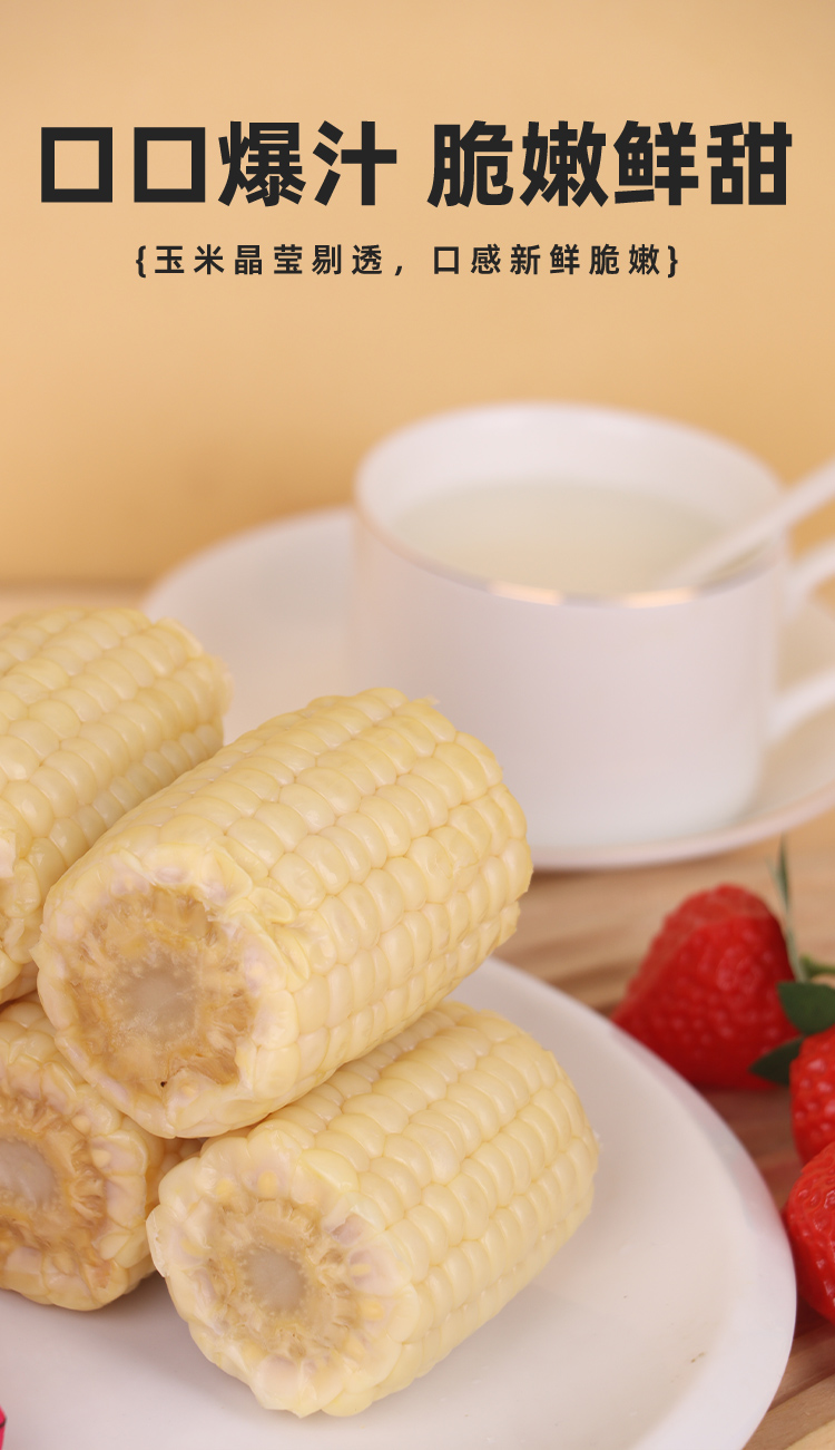 体型较普通水果玉米更为小巧,色洁白如珍珠,籽粒饱满亮白,果衣更薄,清甜多汁,带有牛奶香甜味。