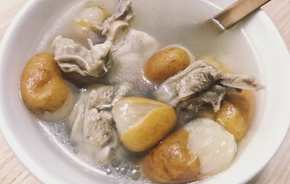 5、黄皮鸡汤:按照通常的做法先把鸡汤煮好。取部分鸡汤放入小锅中。加入黄皮,再慢煮一会。加盐调味即可。用黄皮煮肉类的汤,味道很特殊,有黄皮特有的香味,还有点酸酸的,不油腻,爽口,很适合夏天饮用。