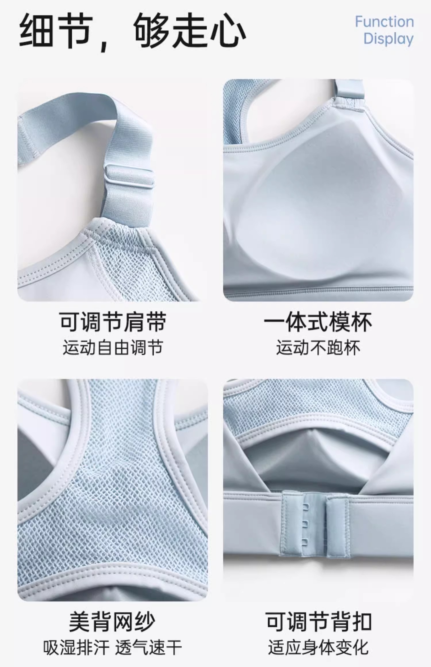 跃牌(呗咪纷纷系列)莱卡可调节高强度运动内衣女防震跑步训练瑜伽服背心 WX180