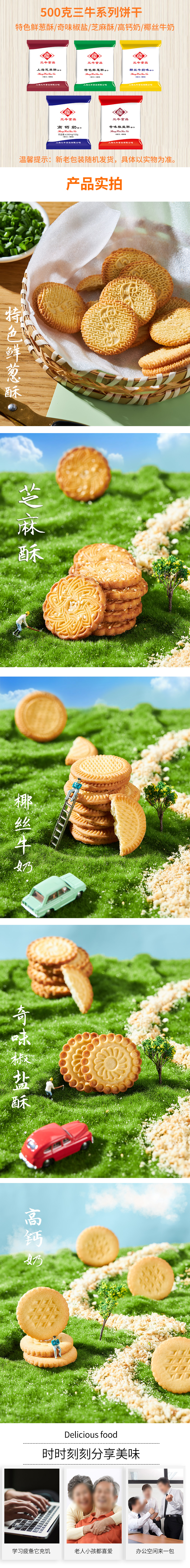 500g×4 特色鲜葱酥 奇味椒盐 芝麻酥 高钙奶 椰丝牛奶 零食早餐休闲食品 内含独立小包装