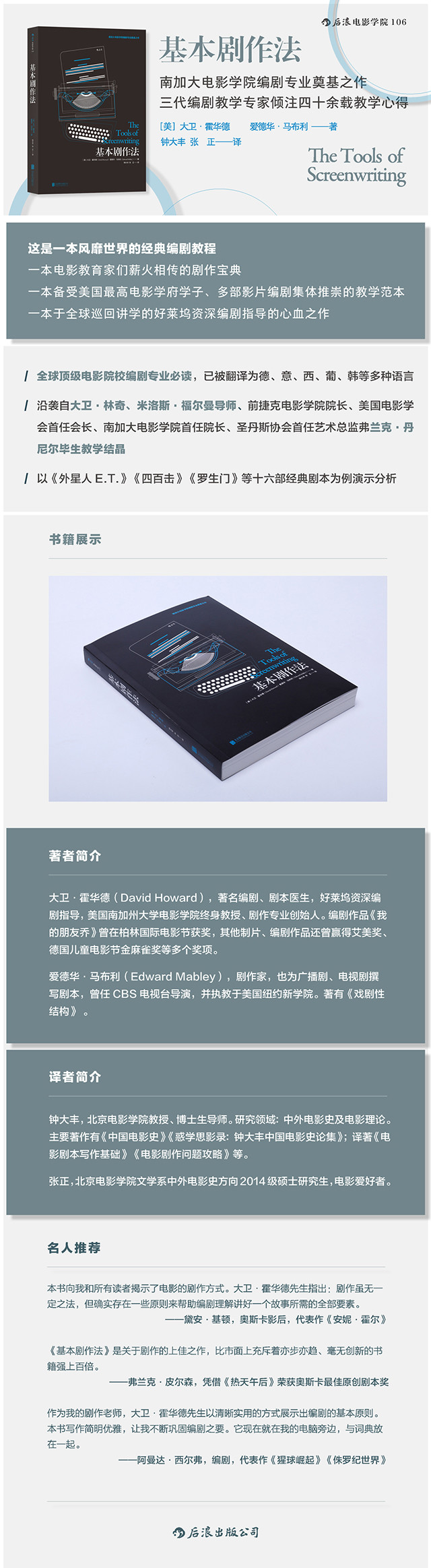《基本剧作法》一书剥离了剧作繁琐的条条框框,引导读者直击要害。我希望每位编剧都能阅读本书。