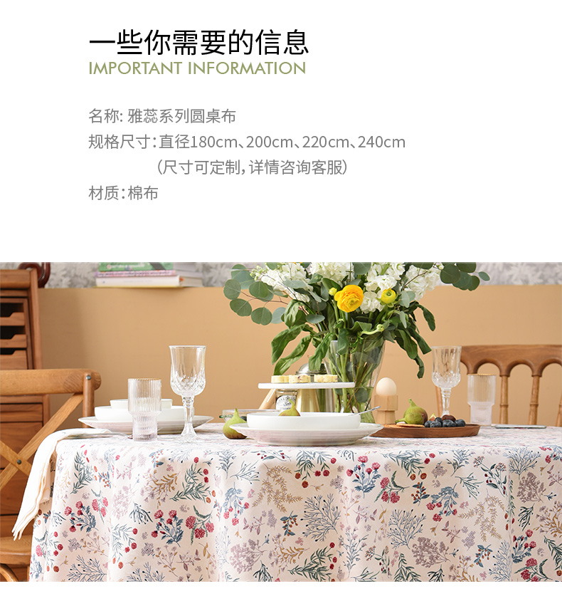 雅蕊系列圆桌布田园全棉欧式复古圆桌布