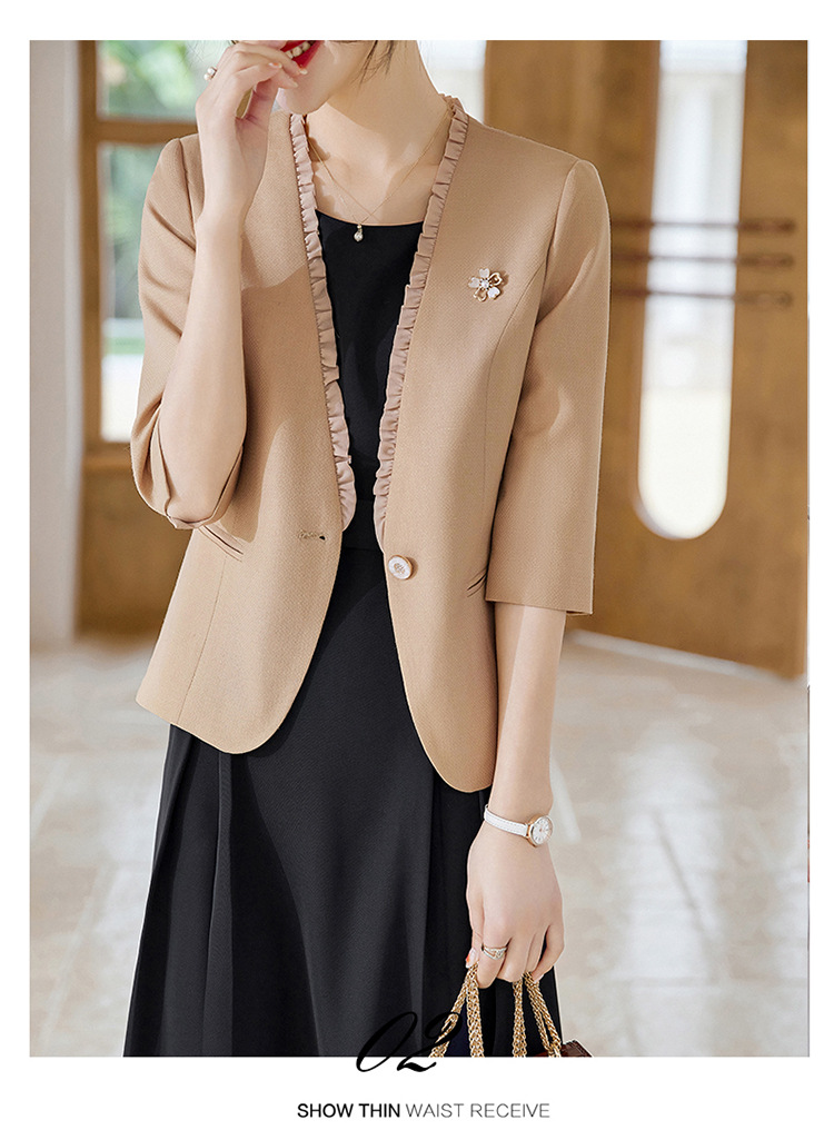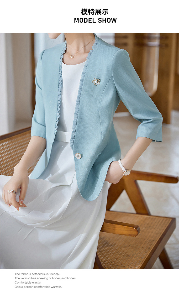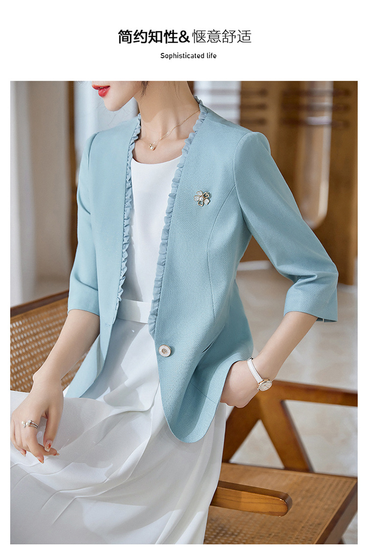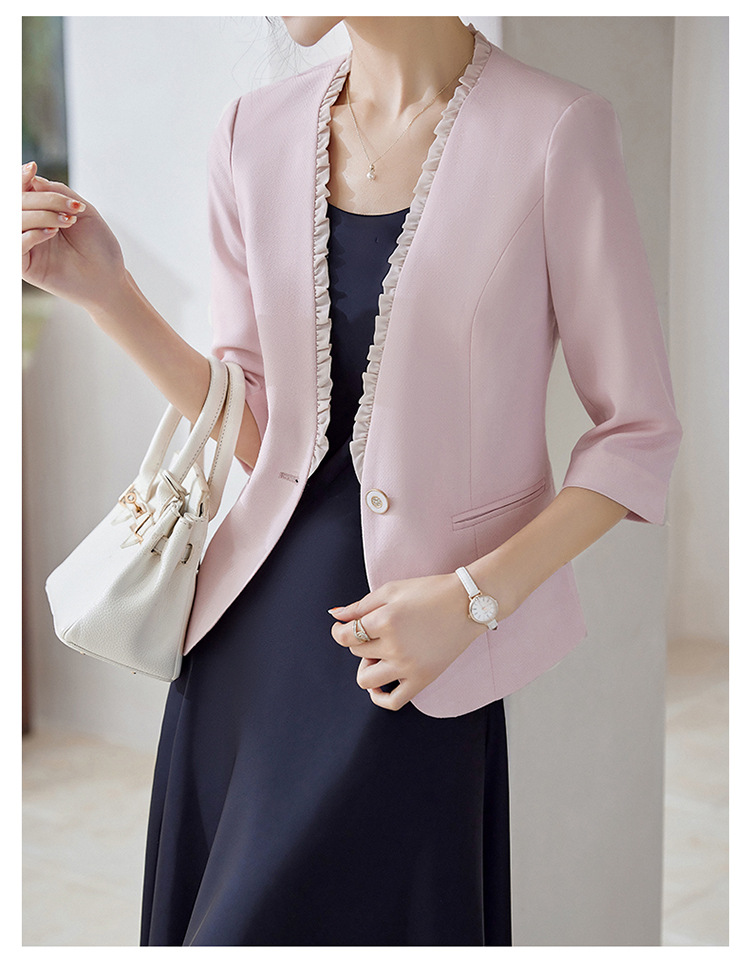 流行木耳边淑女范短外套开衫外搭小西装上衣QL-23926七分袖