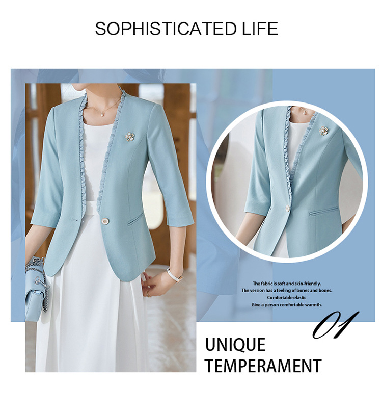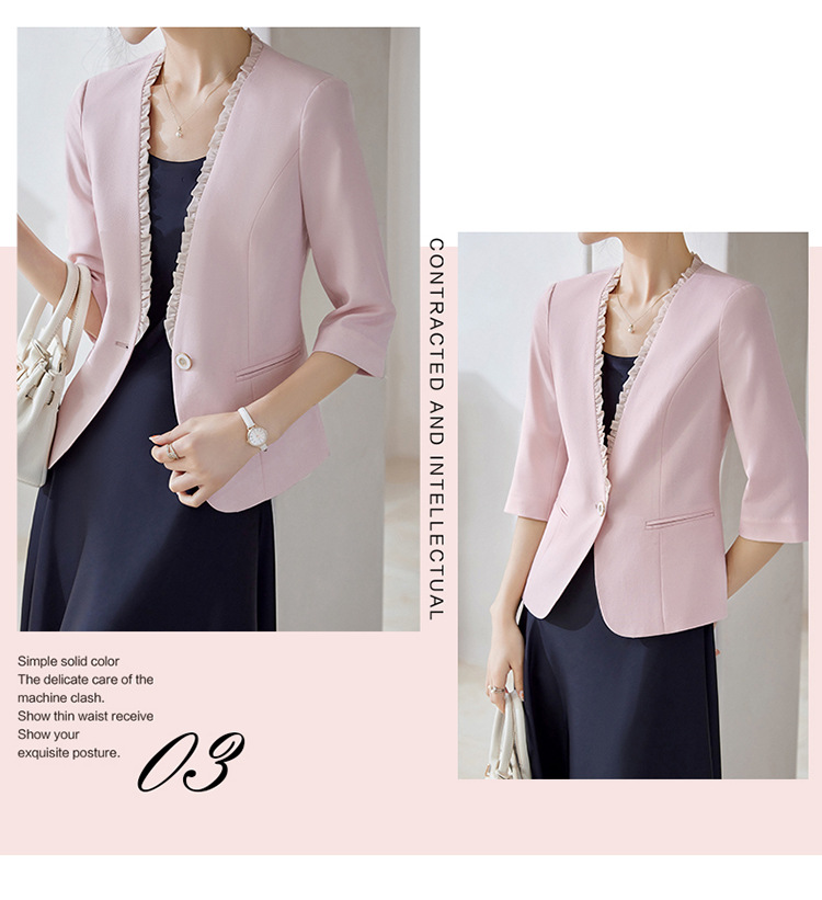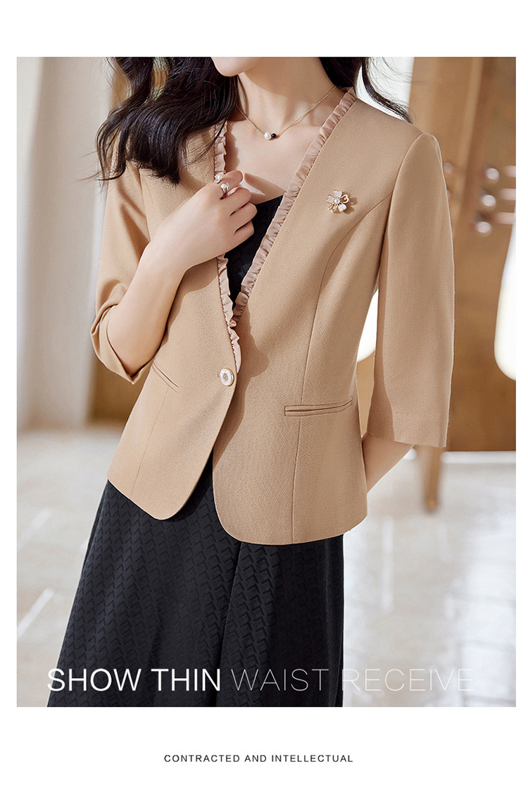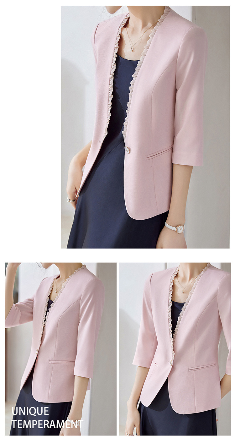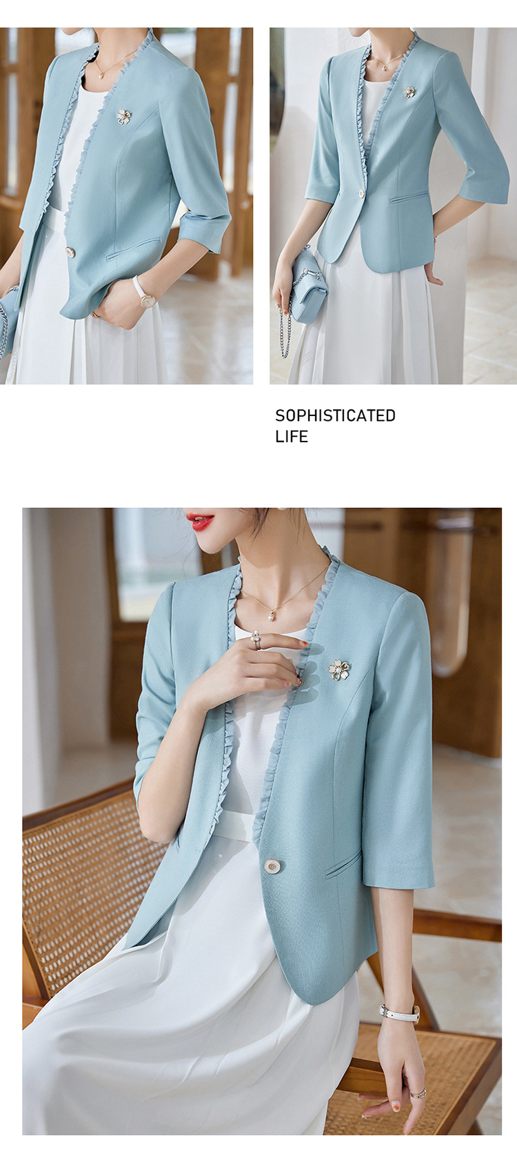流行木耳边淑女范短外套开衫外搭小西装上衣QL-23926七分袖