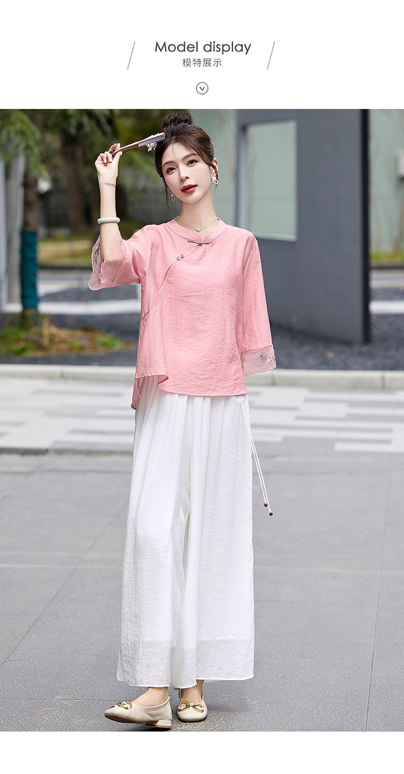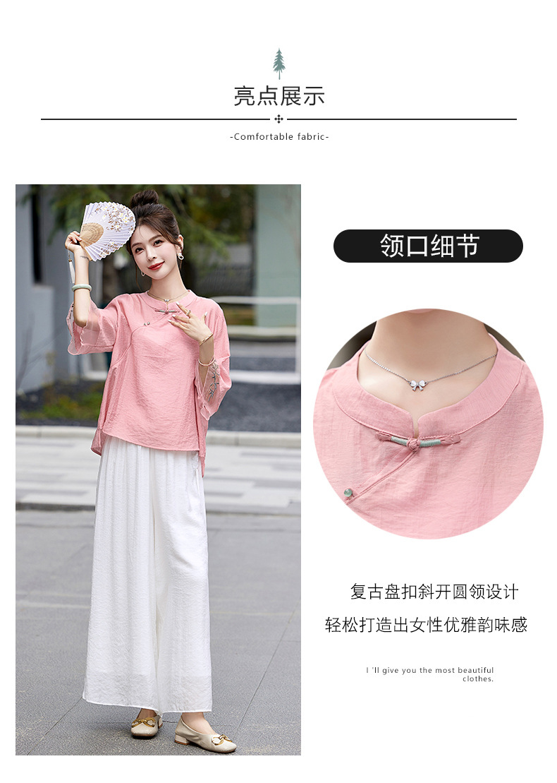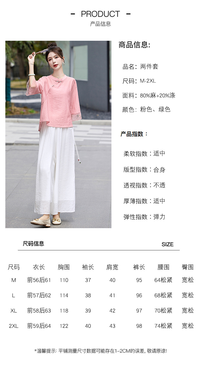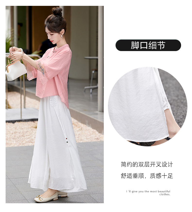中国风时尚天丝麻套装,宽松阔腿裤新中式两件套HR-MY8867