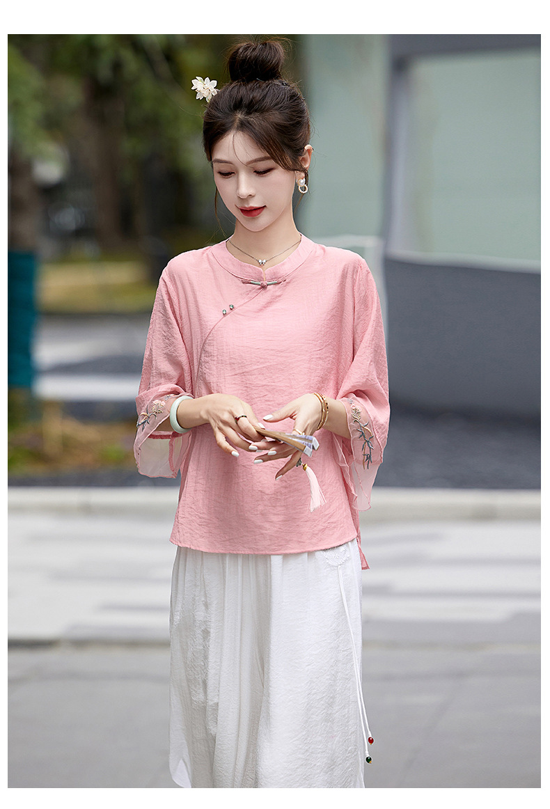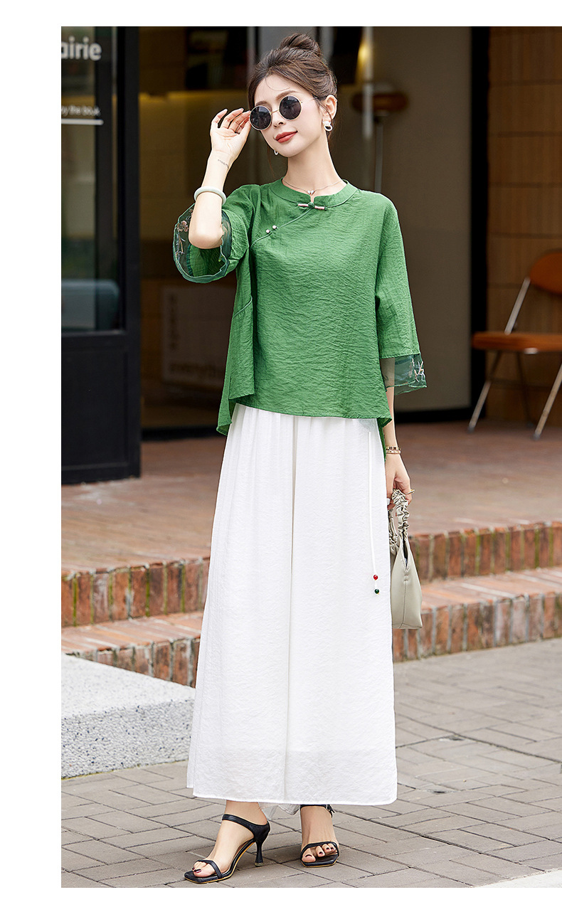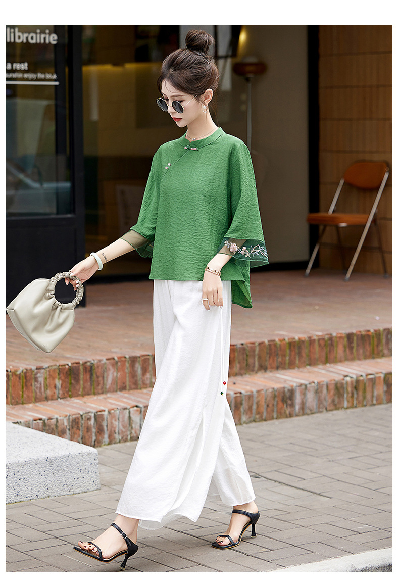 中国风时尚天丝麻套装,宽松阔腿裤新中式两件套HR-MY8867
