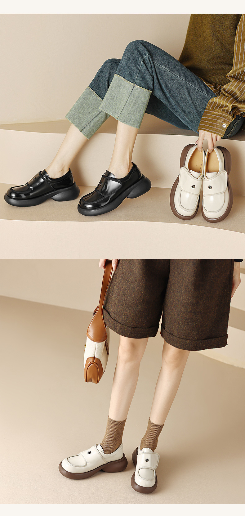 春秋鞋子,厚底松糕鞋百搭单鞋休闲小白鞋BT-S1088-12