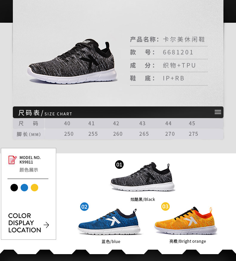KELME卡尔美运动休闲鞋男 轻便透气跑步鞋减震耐磨休闲复古跑鞋