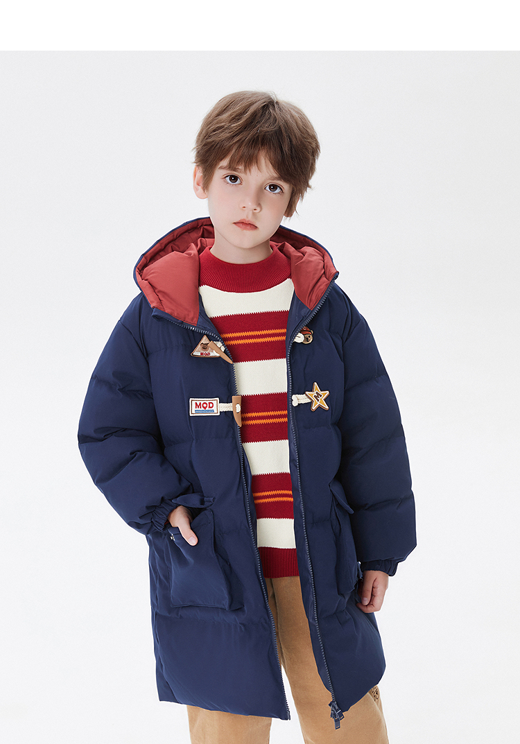 【MQD】【三防】童装男大童中长款羽绒服冬装学院风儿童三防羽绒外套