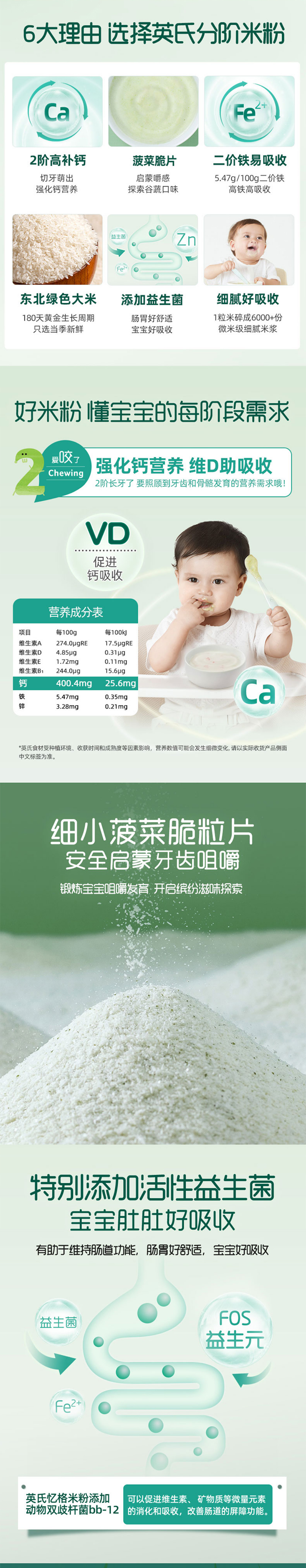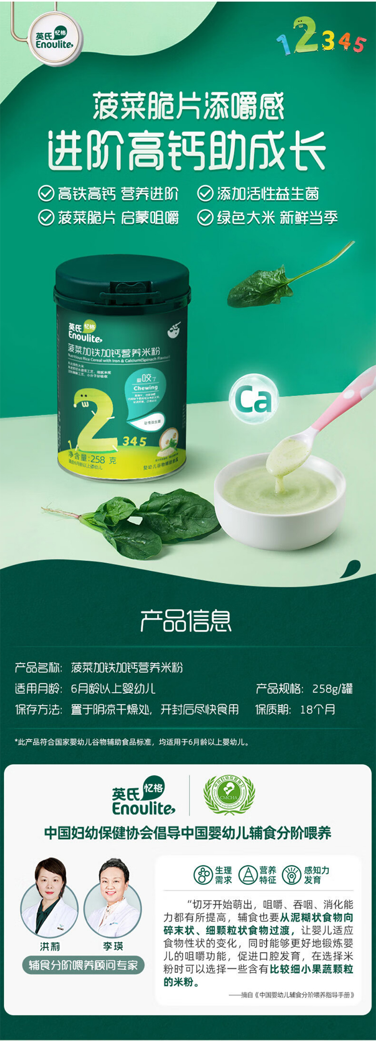 英氏菠菜加铁加钙营养米粉258 克