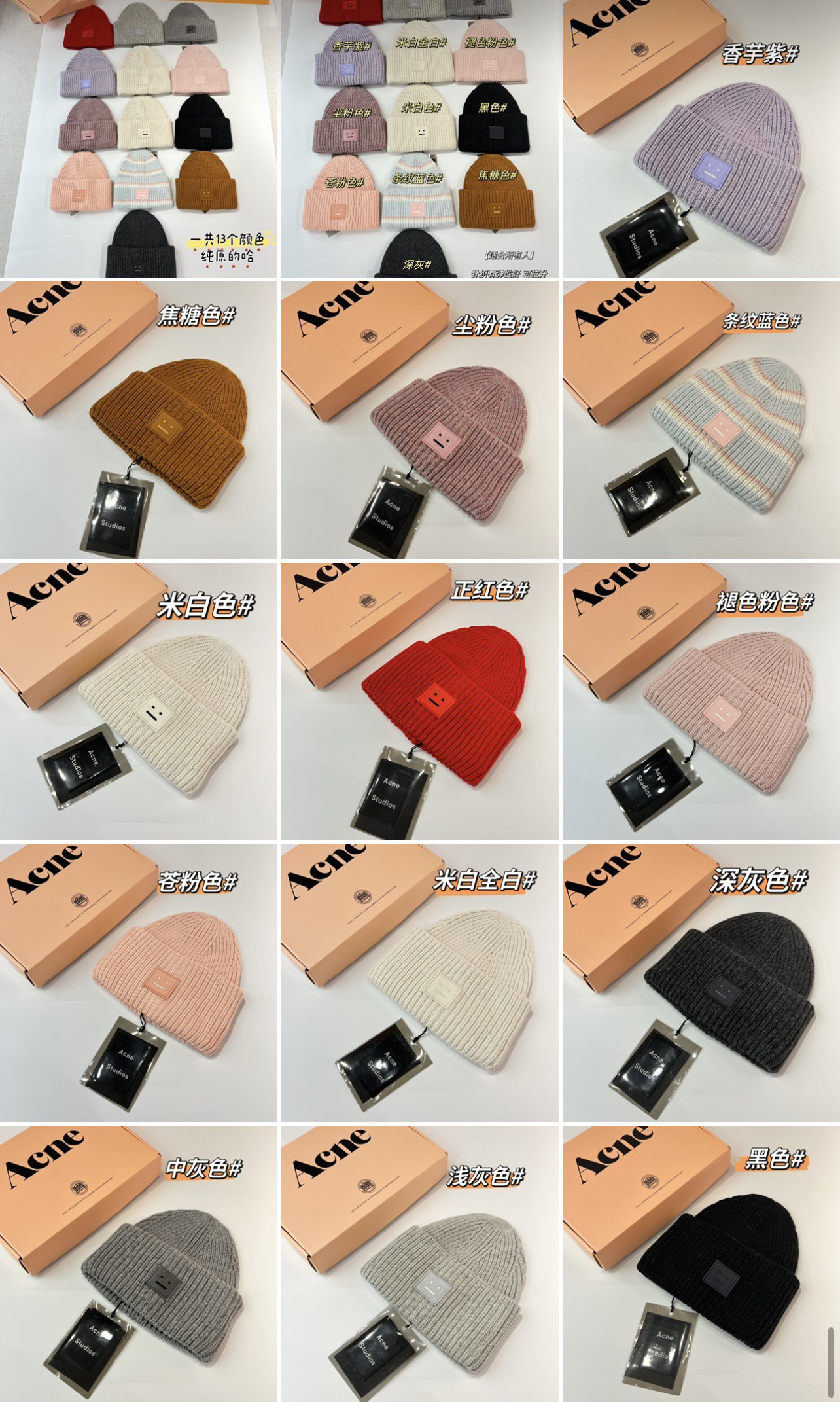 acne笑脸毛线帽来了哈,正B原单🐮货;今年颜色超级多,秋冬必入的搭配神器!男女同款~