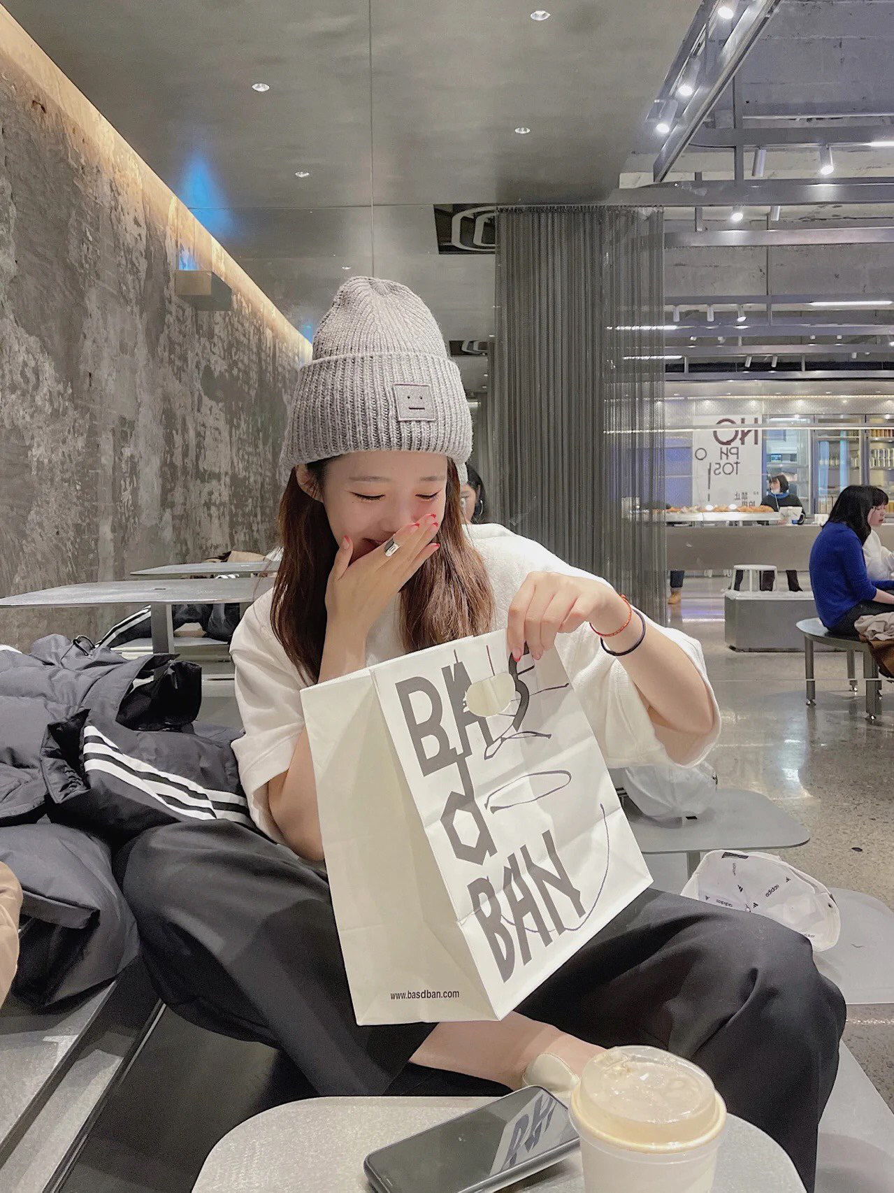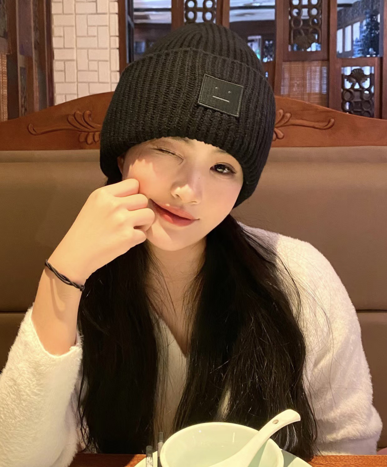 acne笑脸羊毛毛线帽20361