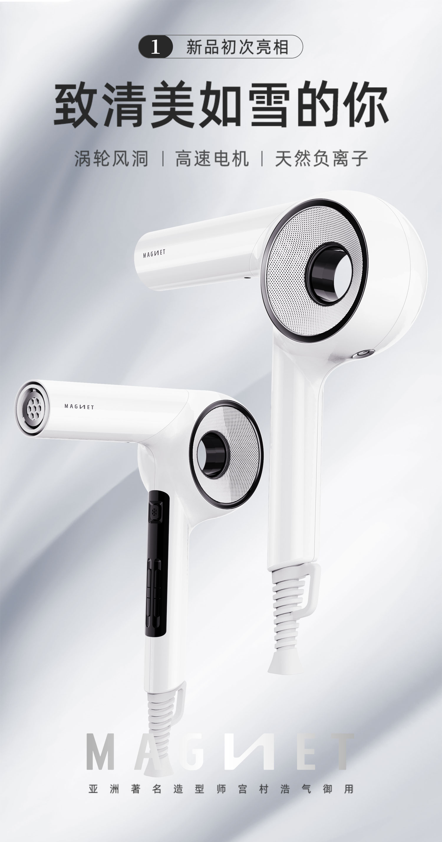【白色款预售 3.26日陆续发货】Magnet Pro 藤原纪香同款 银座沙龙专业线 无刷电机 空气感 灵动蓬发 水润发 createion大师吹风机