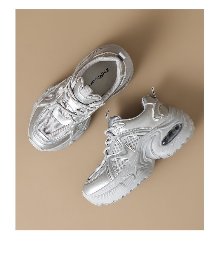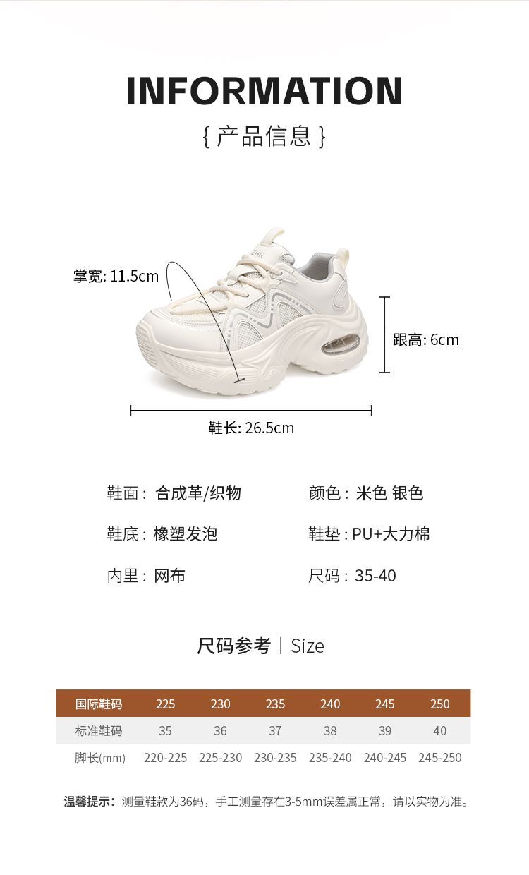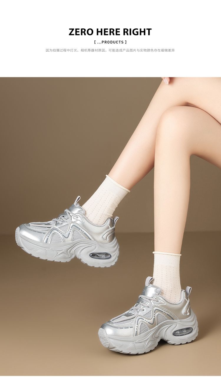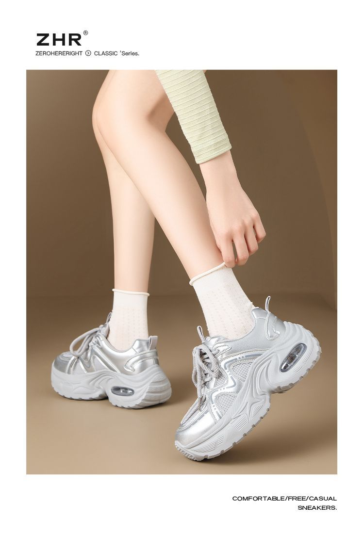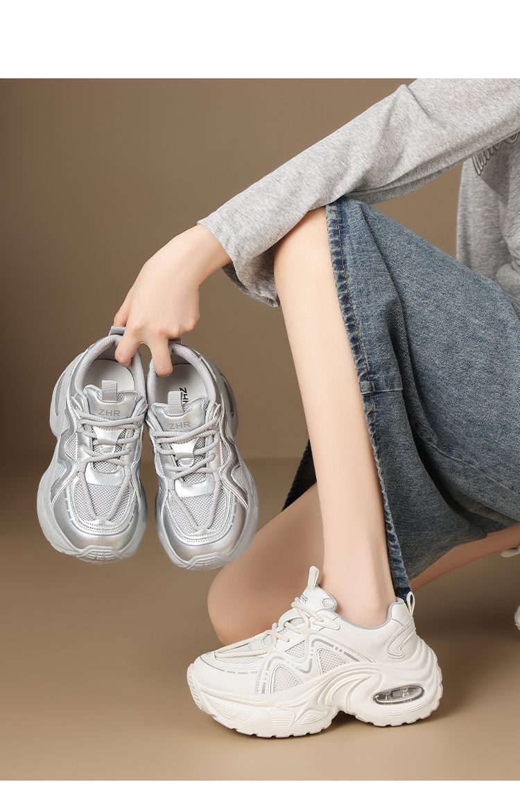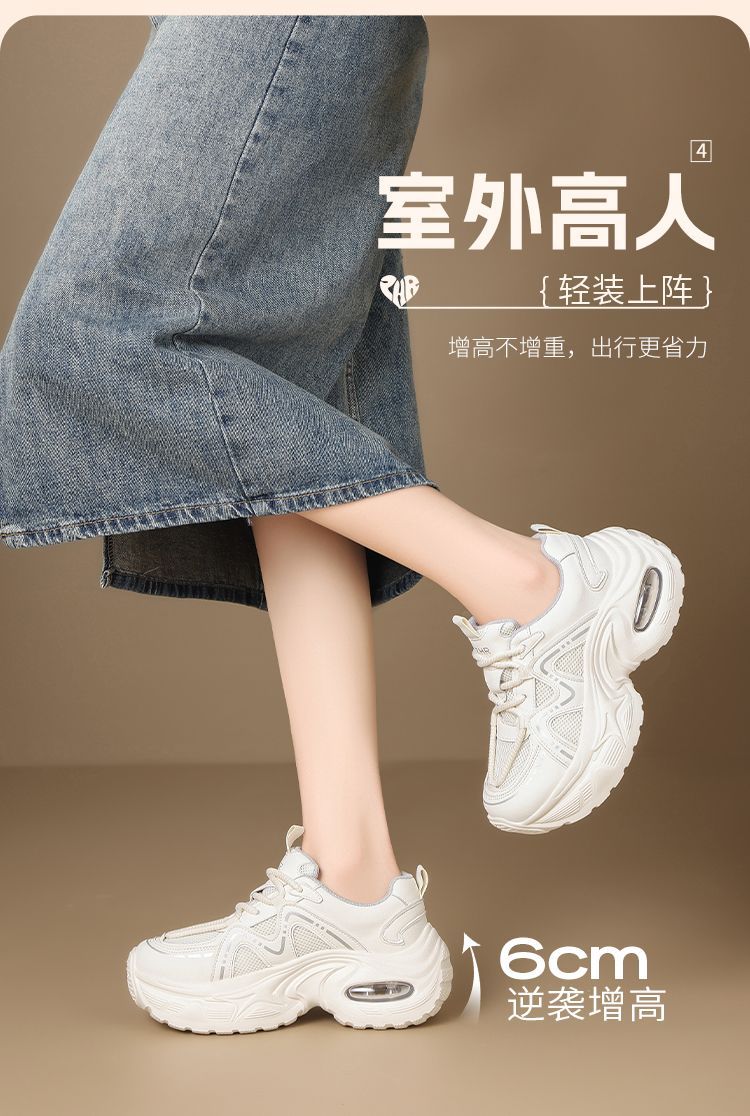 ZHR秒高6cm厚底增高老爹鞋2025秋季新款女透气网面小个子休闲鞋