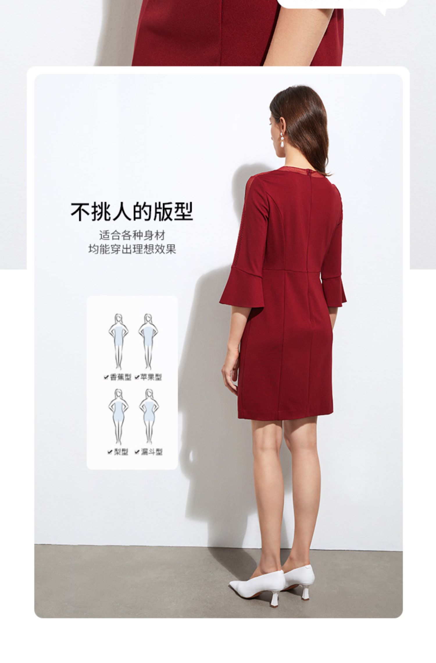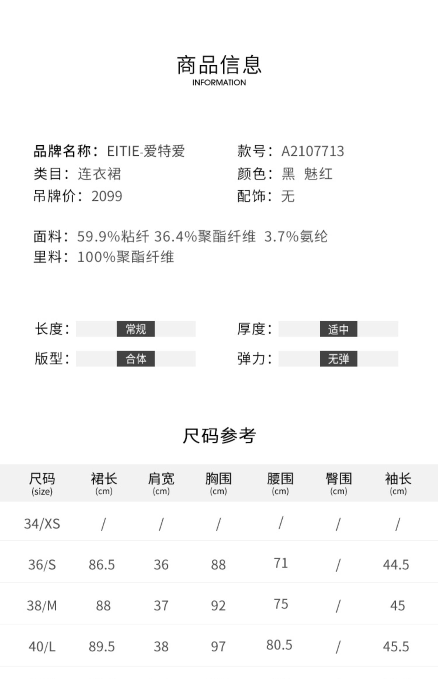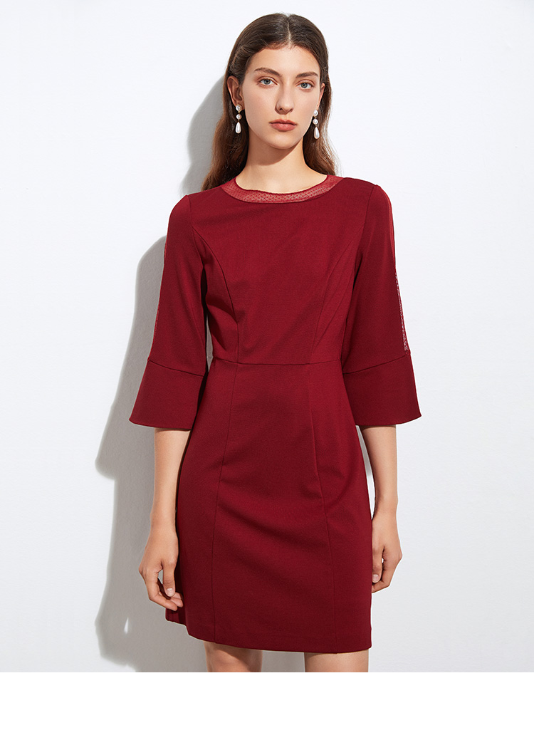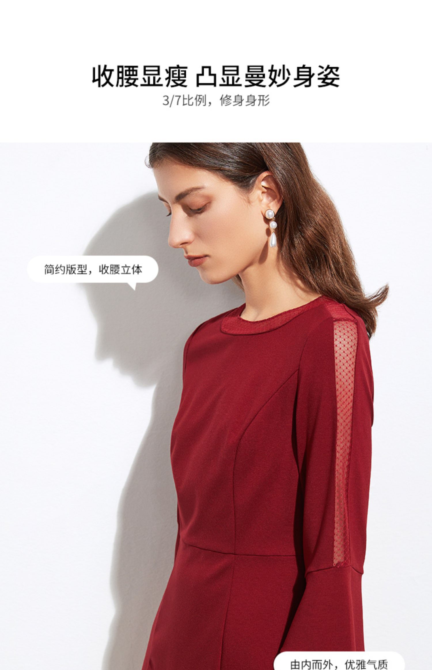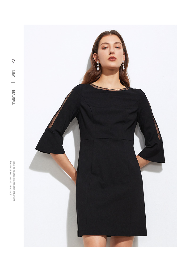 EITIE爱特爱秋季新款时尚圆领收腰A版显瘦喇叭七分袖连衣裙A2107713
