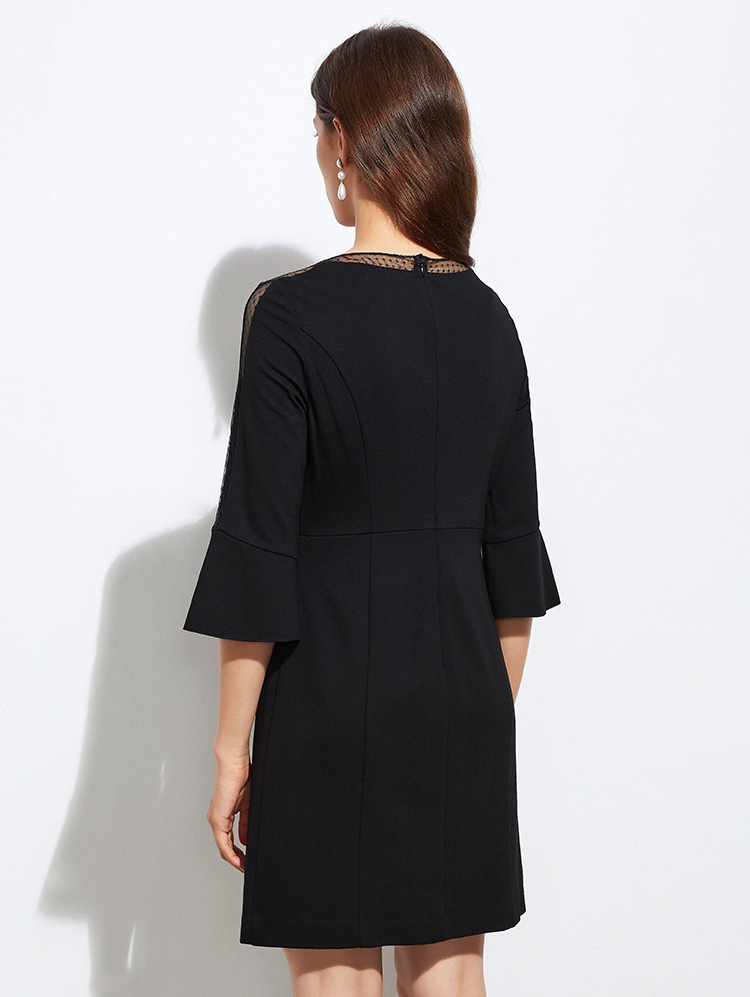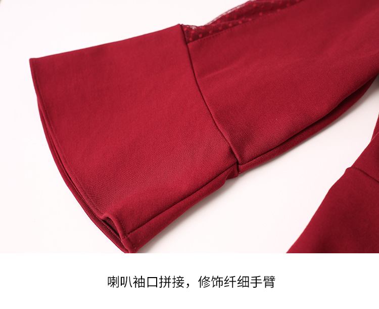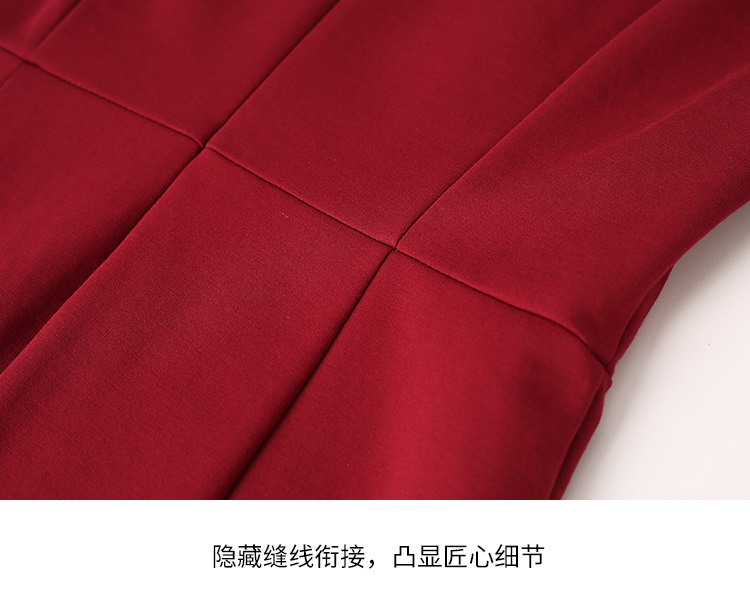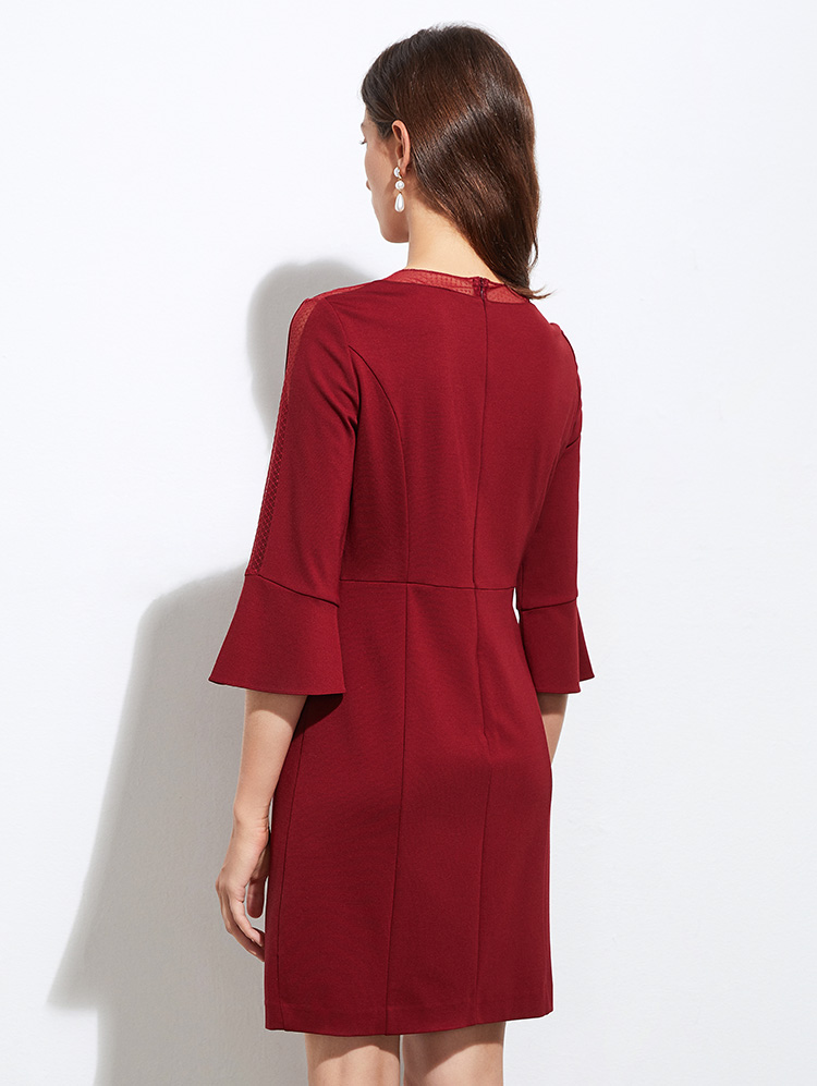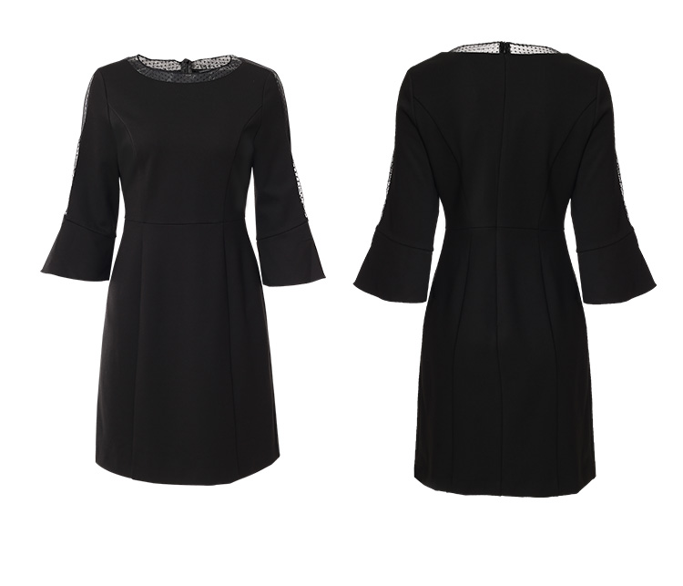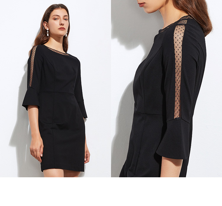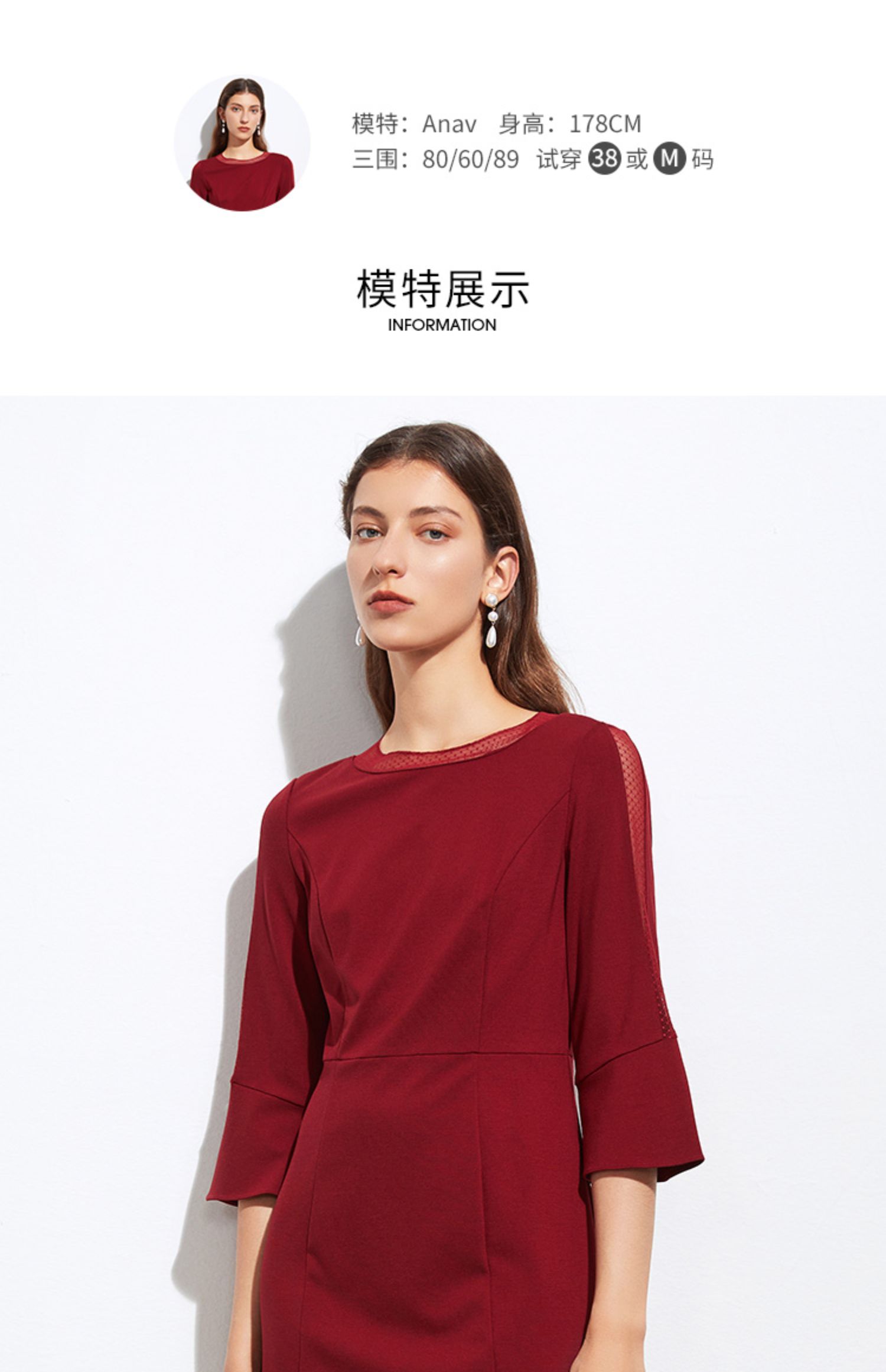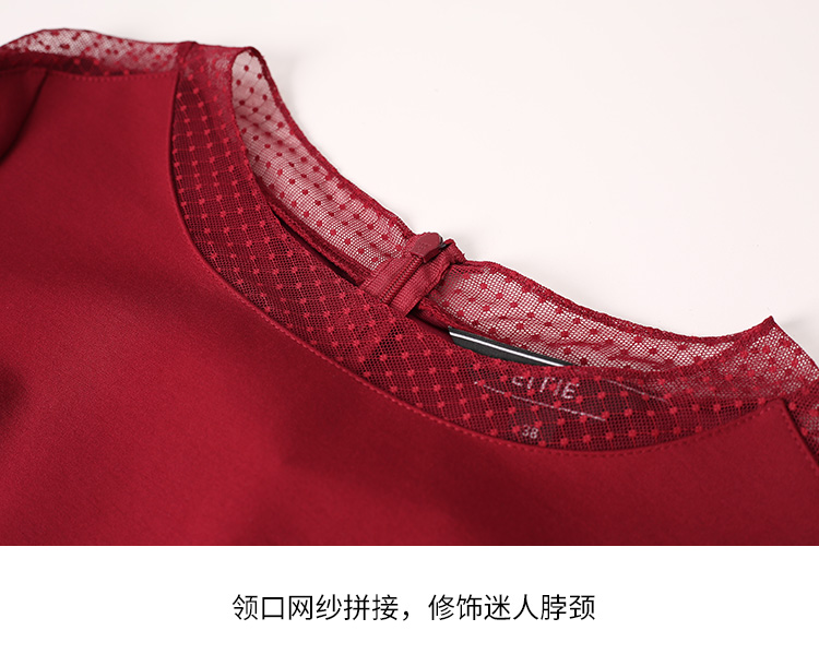EITIE爱特爱秋季新款时尚圆领收腰A版显瘦喇叭七分袖连衣裙A2107713