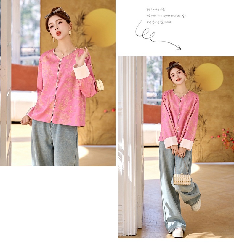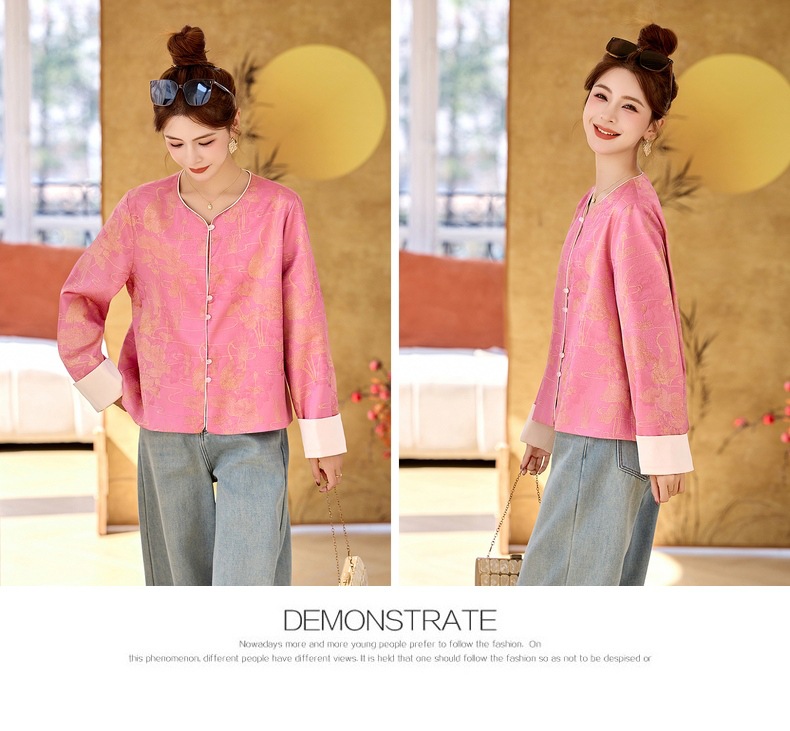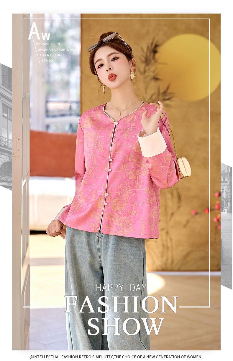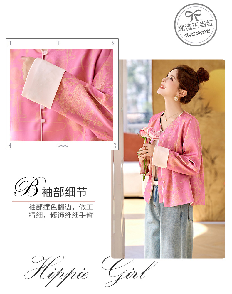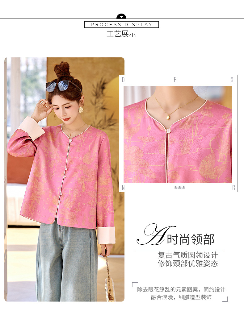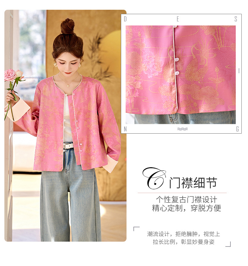 HR MDN25001新中式国风上衣复古印花小香风外套