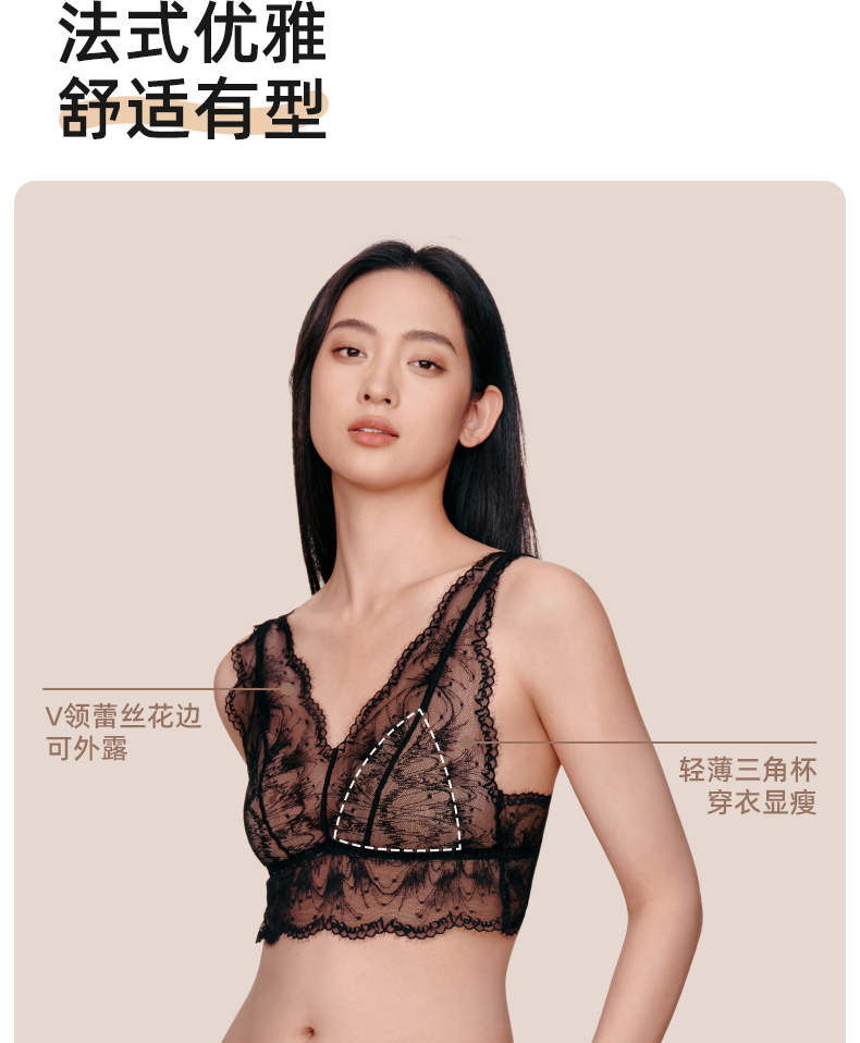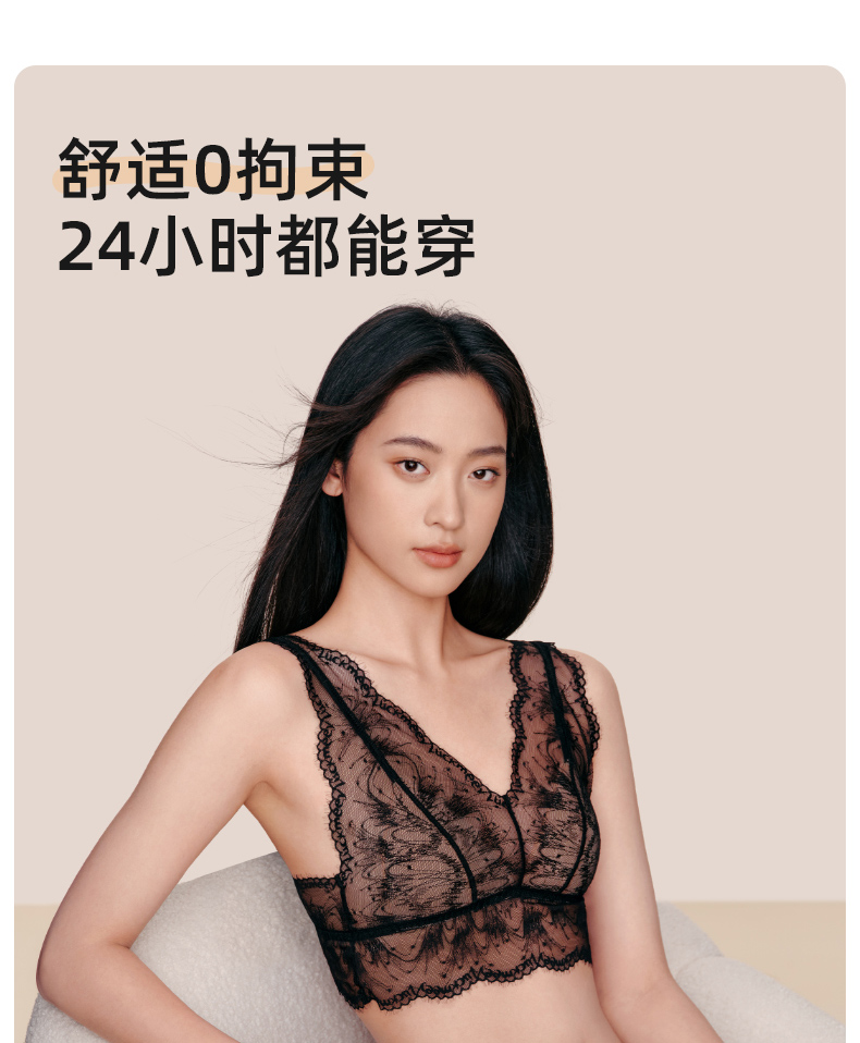 【幸棉】幸棉法式纤盈V领蕾丝无钢圈性格聚拢内衣24W101094