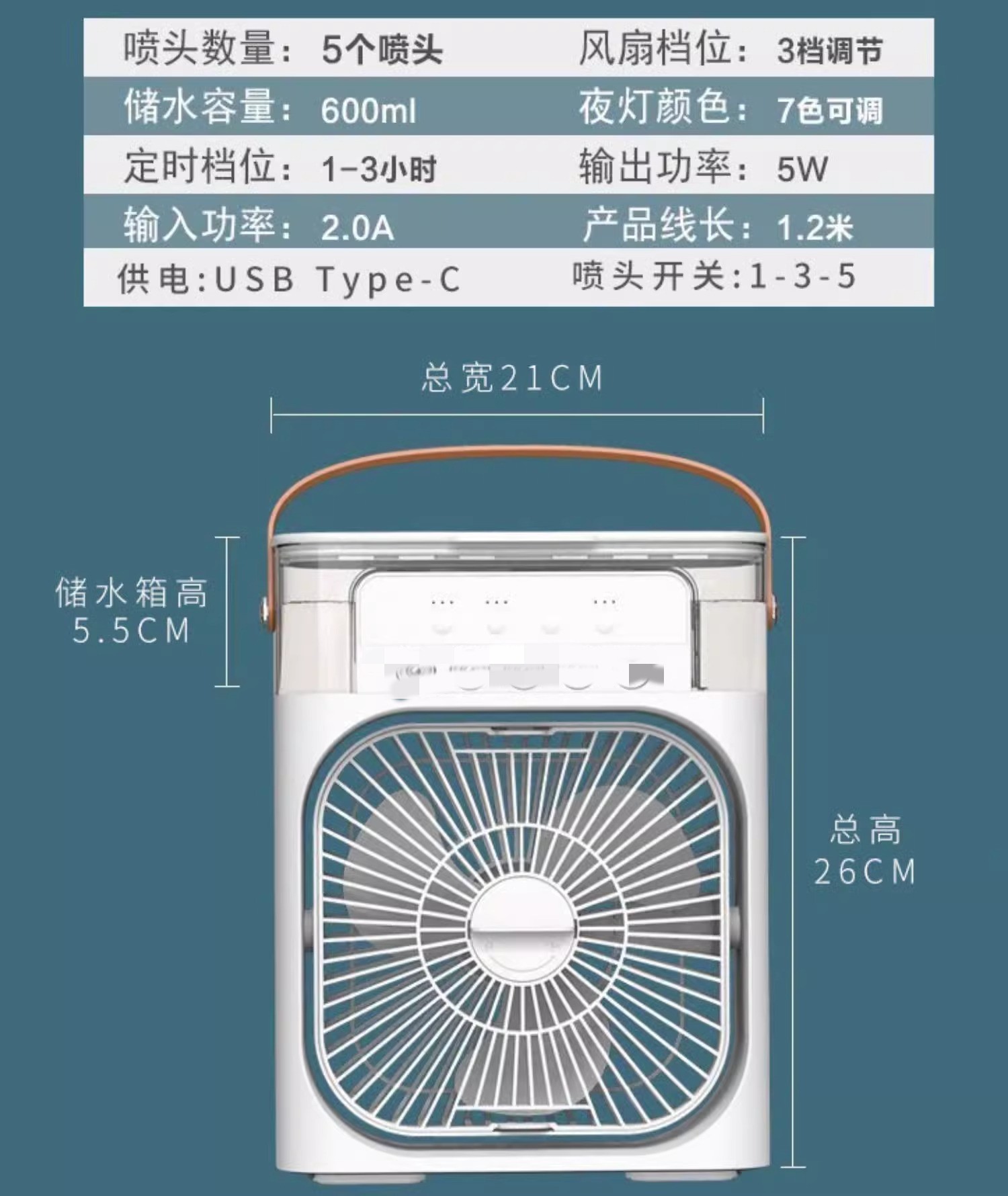 【喷雾加湿❗桌面循环扇】五孔喷雾风扇家用多功能办公室桌面雾化节能加湿器冷风机灯光插电加喷雾风扇湿冷风一体舒适度。la