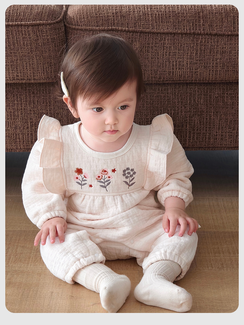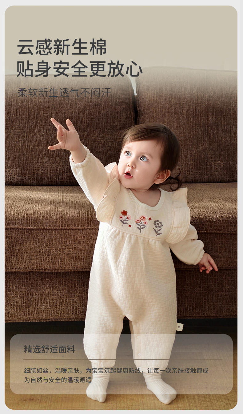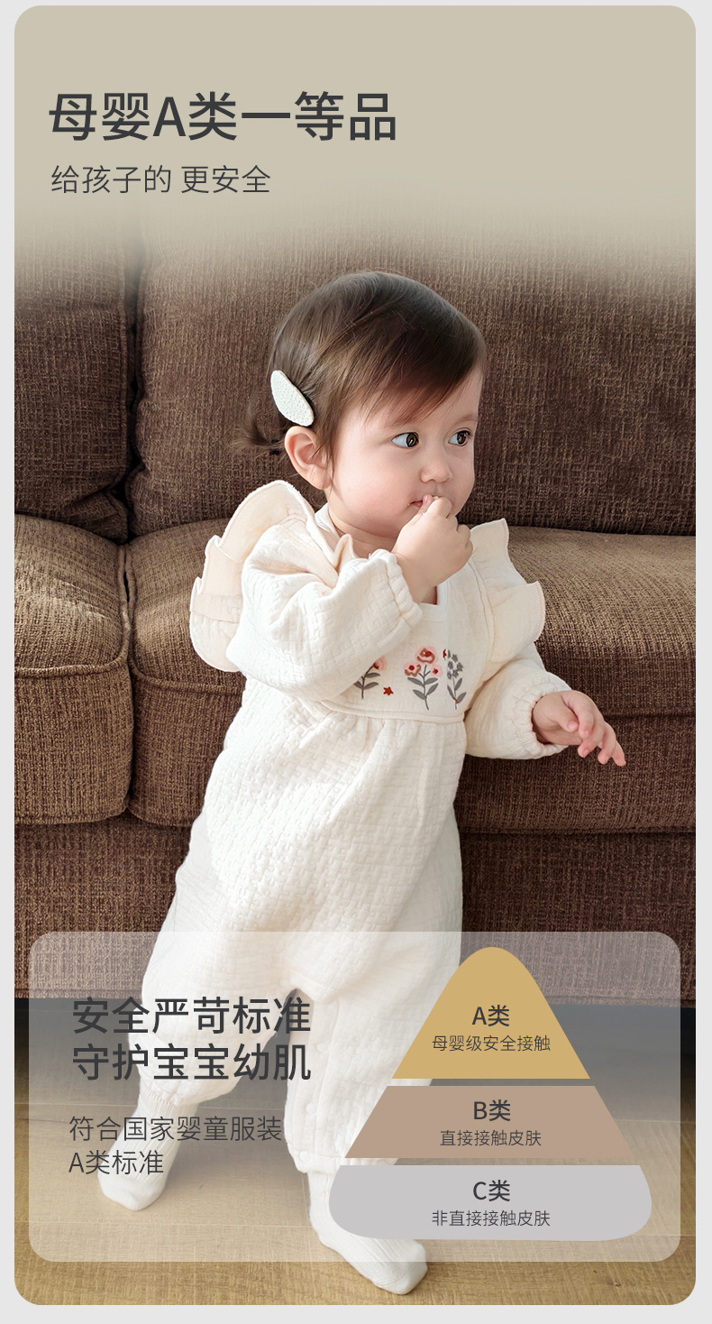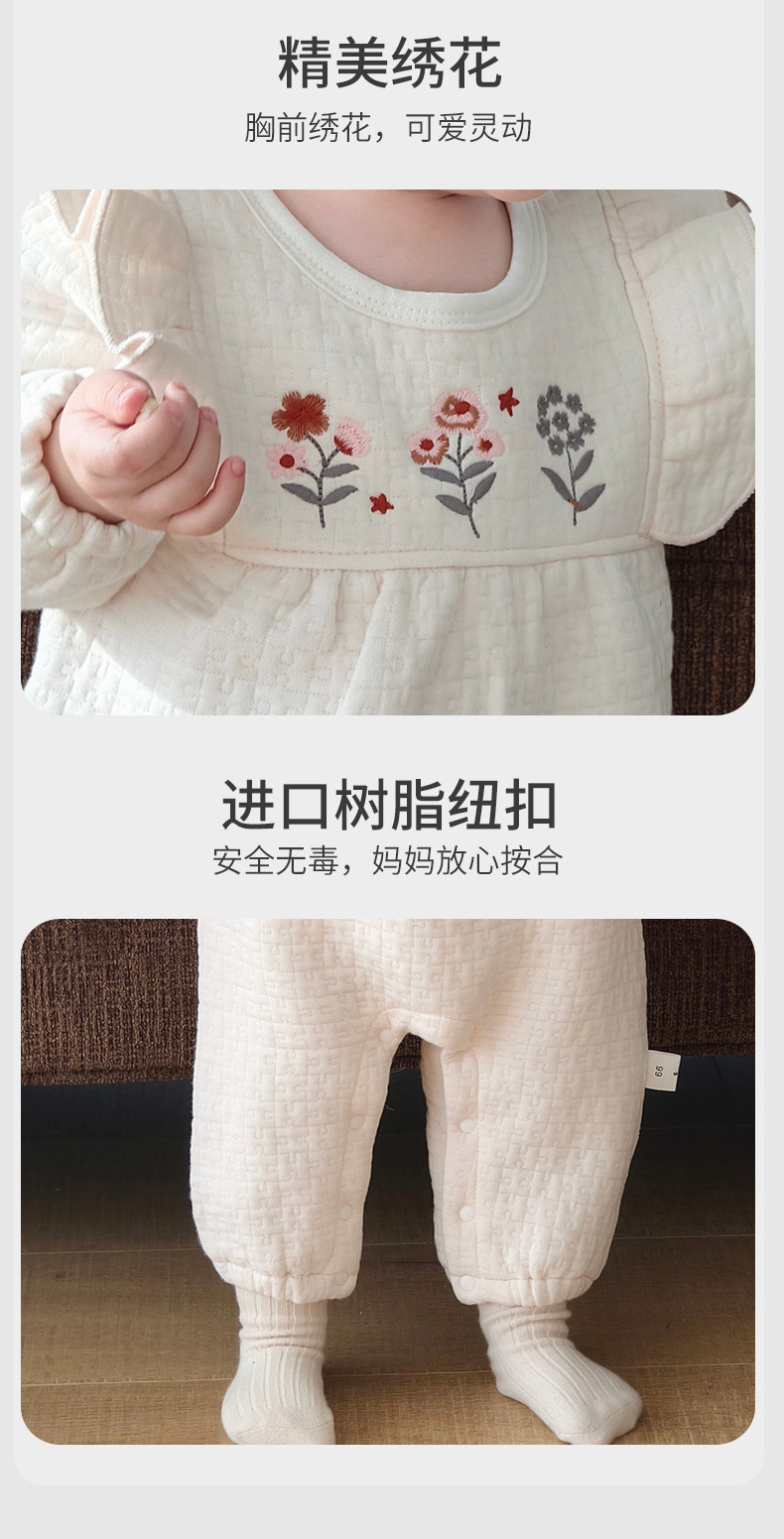 【无骨超柔!三层保暖公主风】女宝宝夹棉连体衣秋冬季保暖婴幼儿可爱公主风哈衣空气层爬爬服。hb