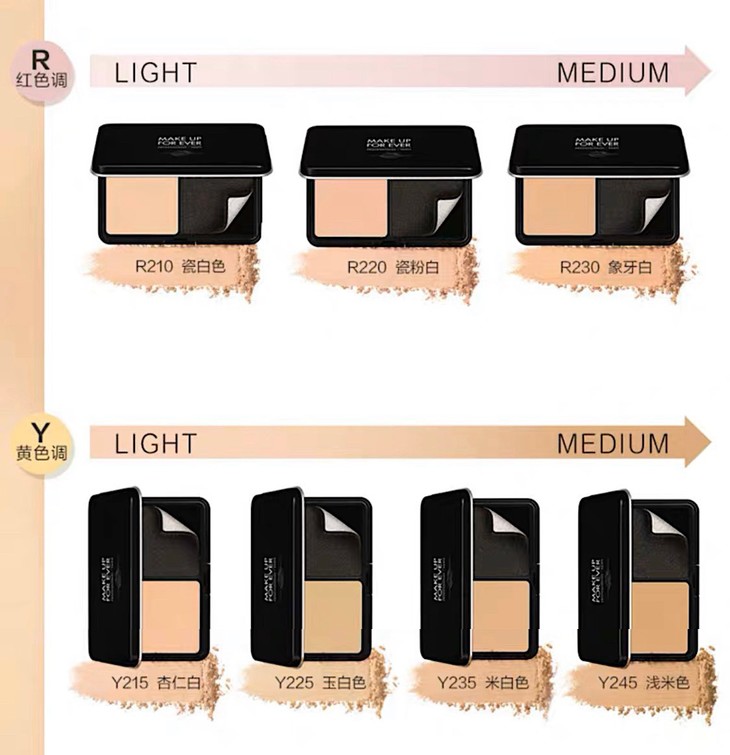 MAKE UP FOREVER空气柔雾粉饼👍🏻粉饼持妆效果可长达12小时🕓,隐匿瑕疵☁,哑而不厚重,让肌肤轻盈透气🌬,打造丝绒雾面妆感,并且有一定的防水功效哦💦。这款自带化妆镜☑和一块双面粉扑☑,粉扑也具有双重功效😍,⚫黑面光面可服帖上妆,按压叠加可增加遮瑕力,⚪白色绒面可用于随时补妆,打造更为轻盈的妆面效果哦~ #Y225玉兰色,黄调二白,皮肤比较暗黄的妹子推荐哦 #Y215杏白色,黄调最白,适合比较白皙的妹子 #R230象牙白,适合亚洲部分肤色偏黄的肤色 #R210瓷白色,粉调最白