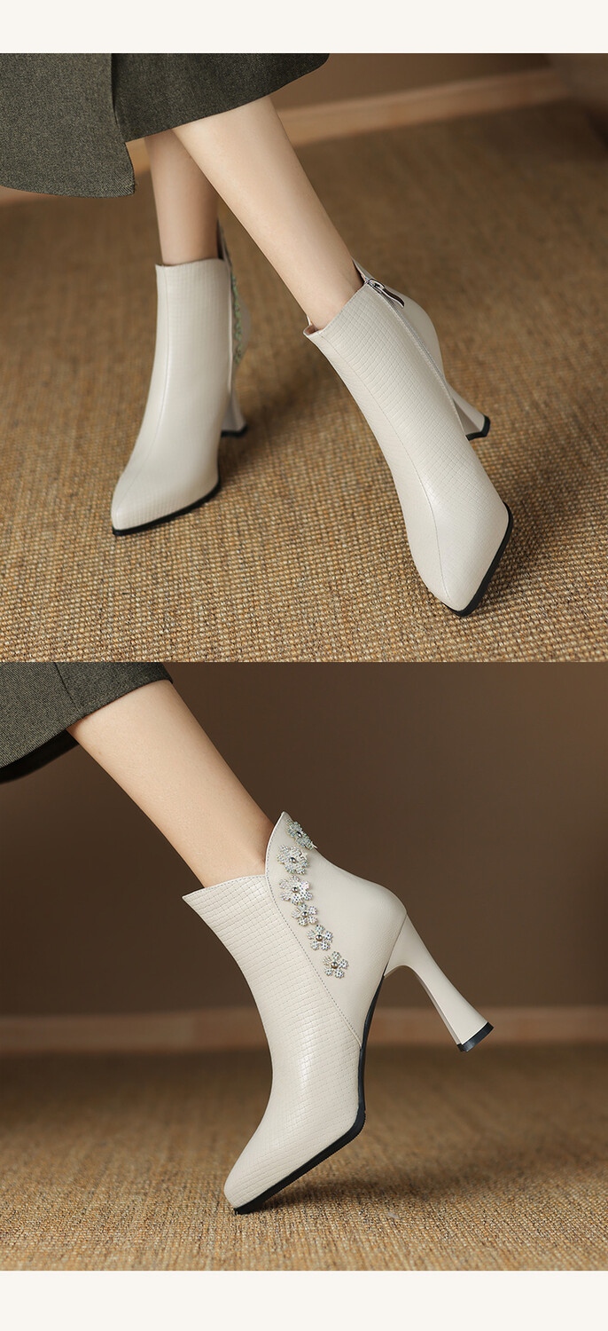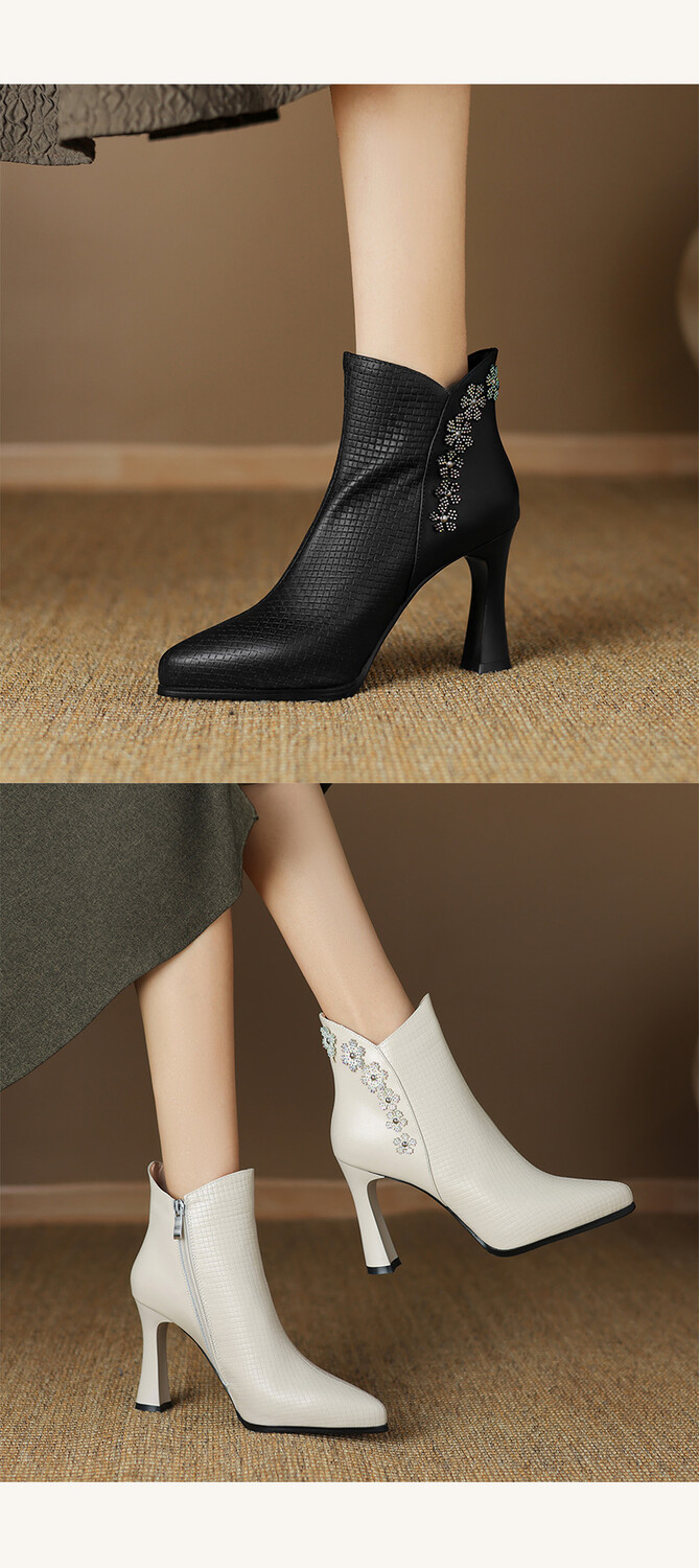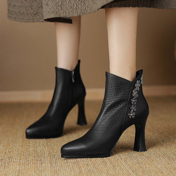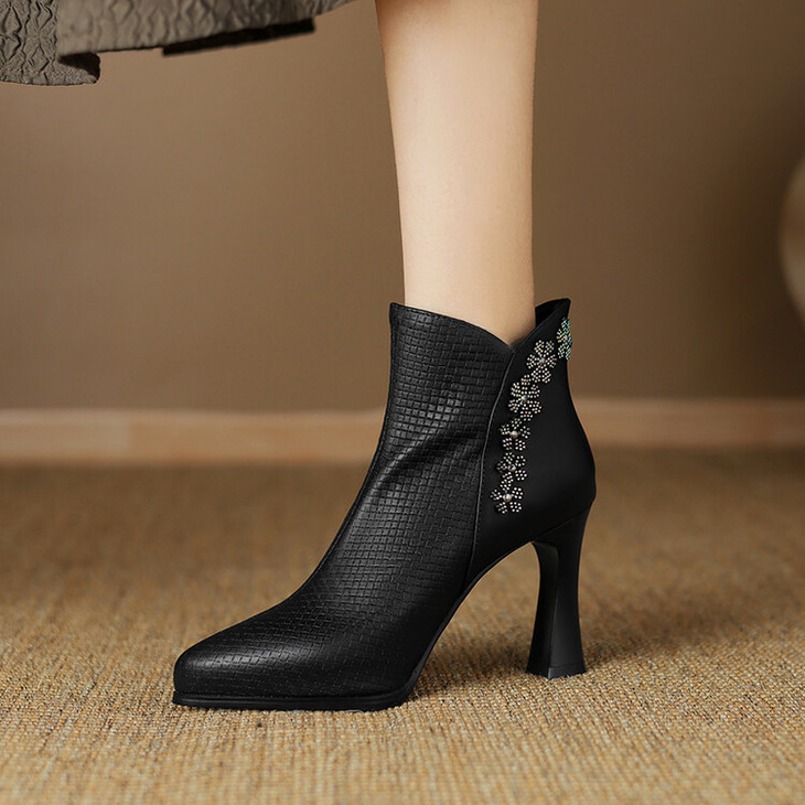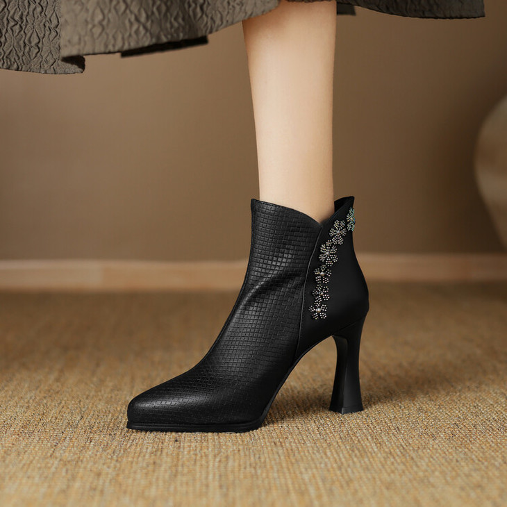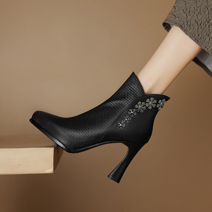 货号:1512鞋面材质:牛皮压花内里:单里 绒里鞋底材质:牛筋底跟高:9.5厘米掌 宽:8cm尺码: 34-39颜色:黑色 米白色