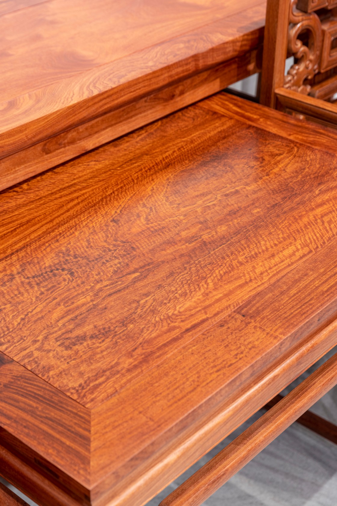 正宗缅甸花梨(大果紫檀)制作,传统榫卯工艺,零白皮零拼补,烘干严谨。