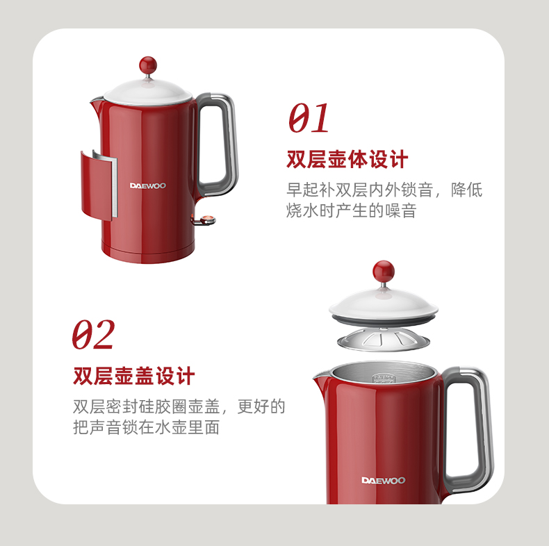 大宇 电热水壶机械款/自动款热水壶家用烧水壶全一体不锈钢大容量