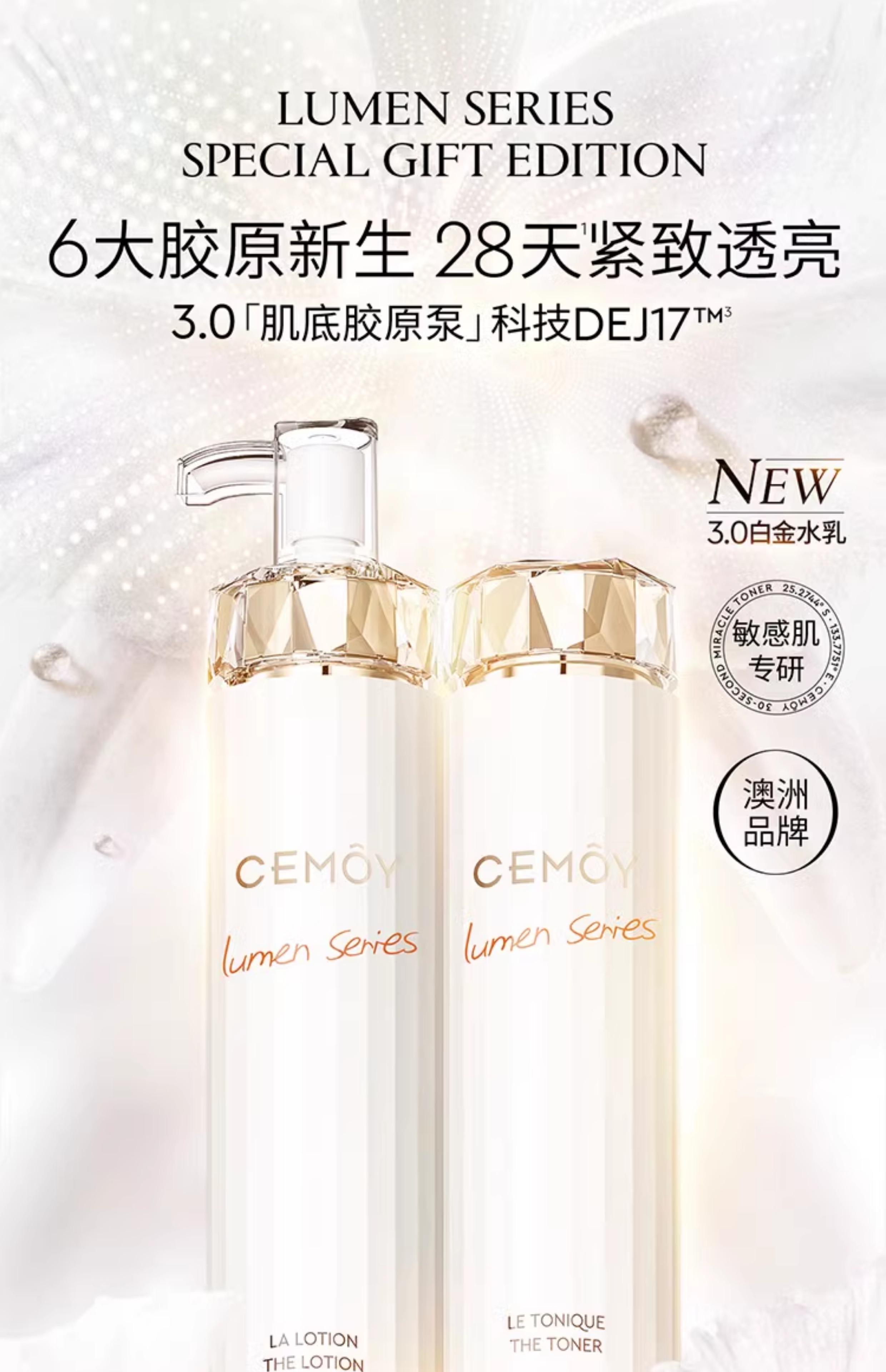 CEMOY白金流明修护赋活系列套装(水120ml+乳120ml+眼霜5ml*2)