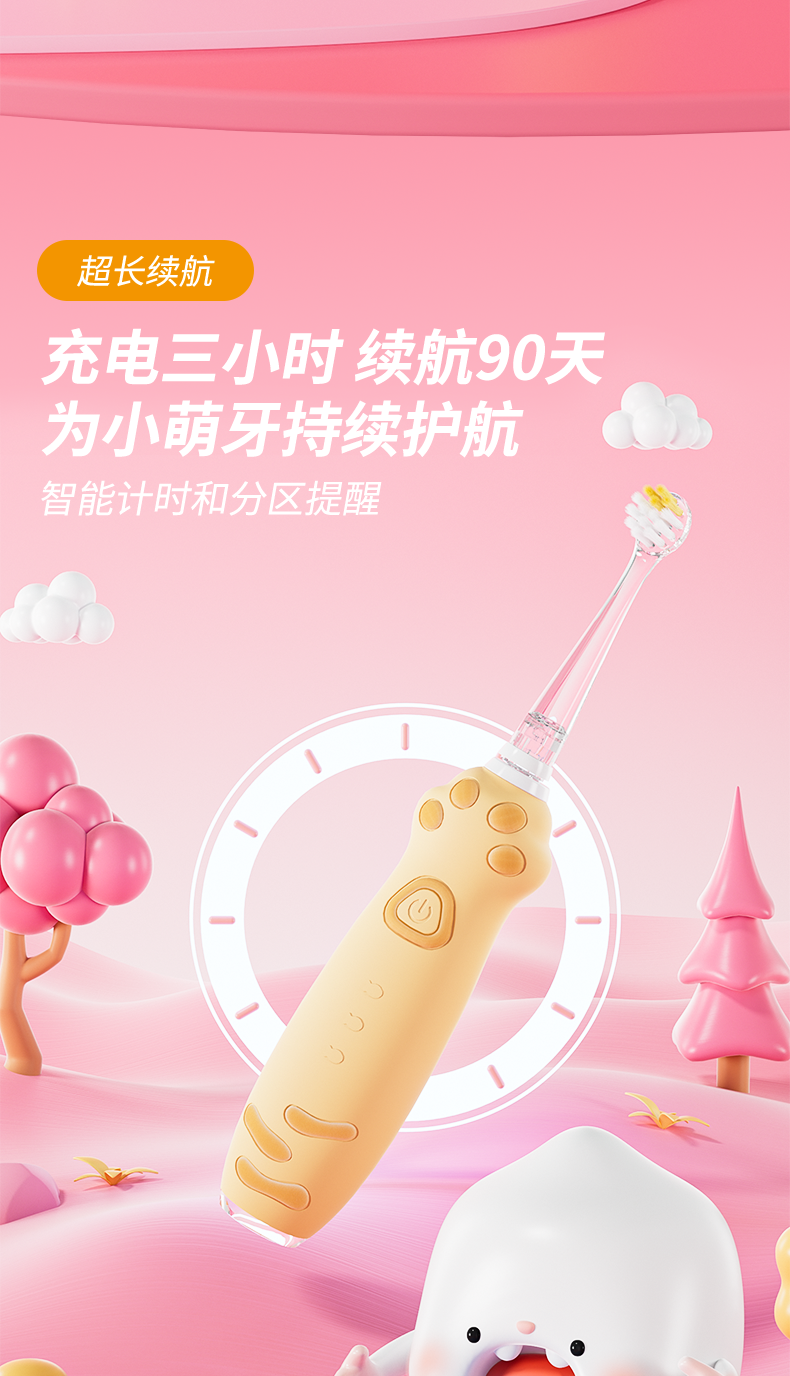 KUTA儿童电动牙刷宝宝1-2-3-6-10岁以上小孩软毛声波全自动猫爪造型 送壁挂架