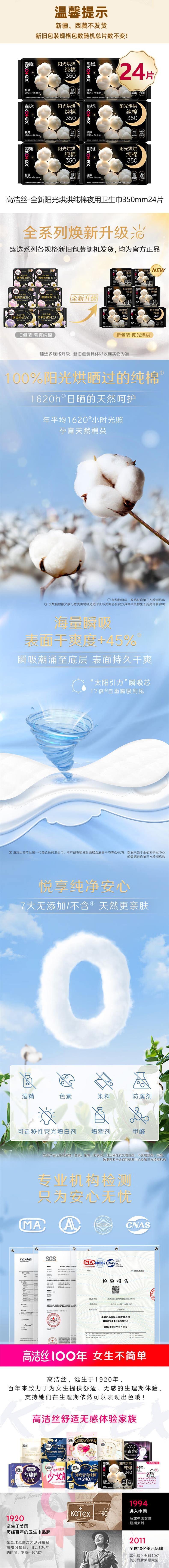 高洁丝 全新阳光烘烘纯棉夜用卫生巾350mm4片*6包 JGS0HY4P6B