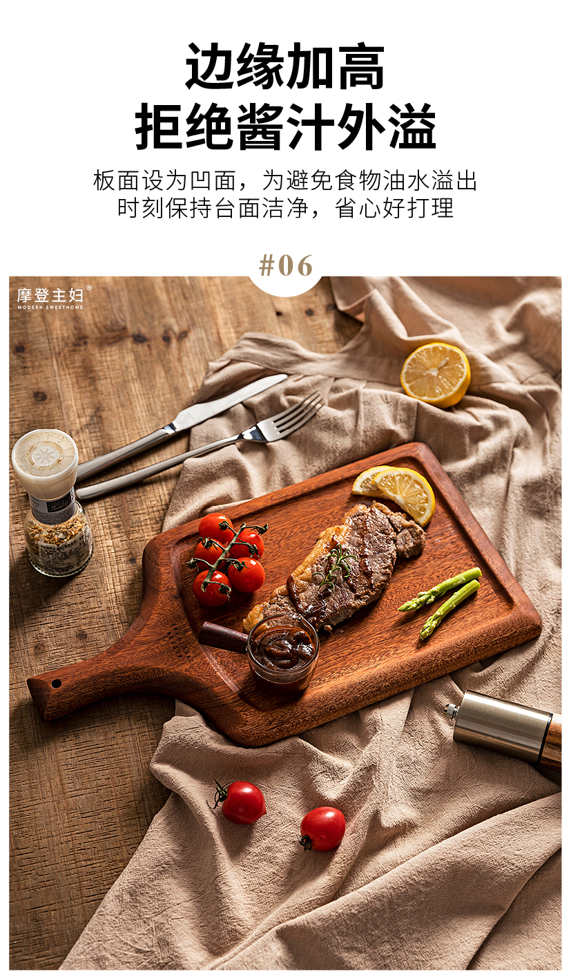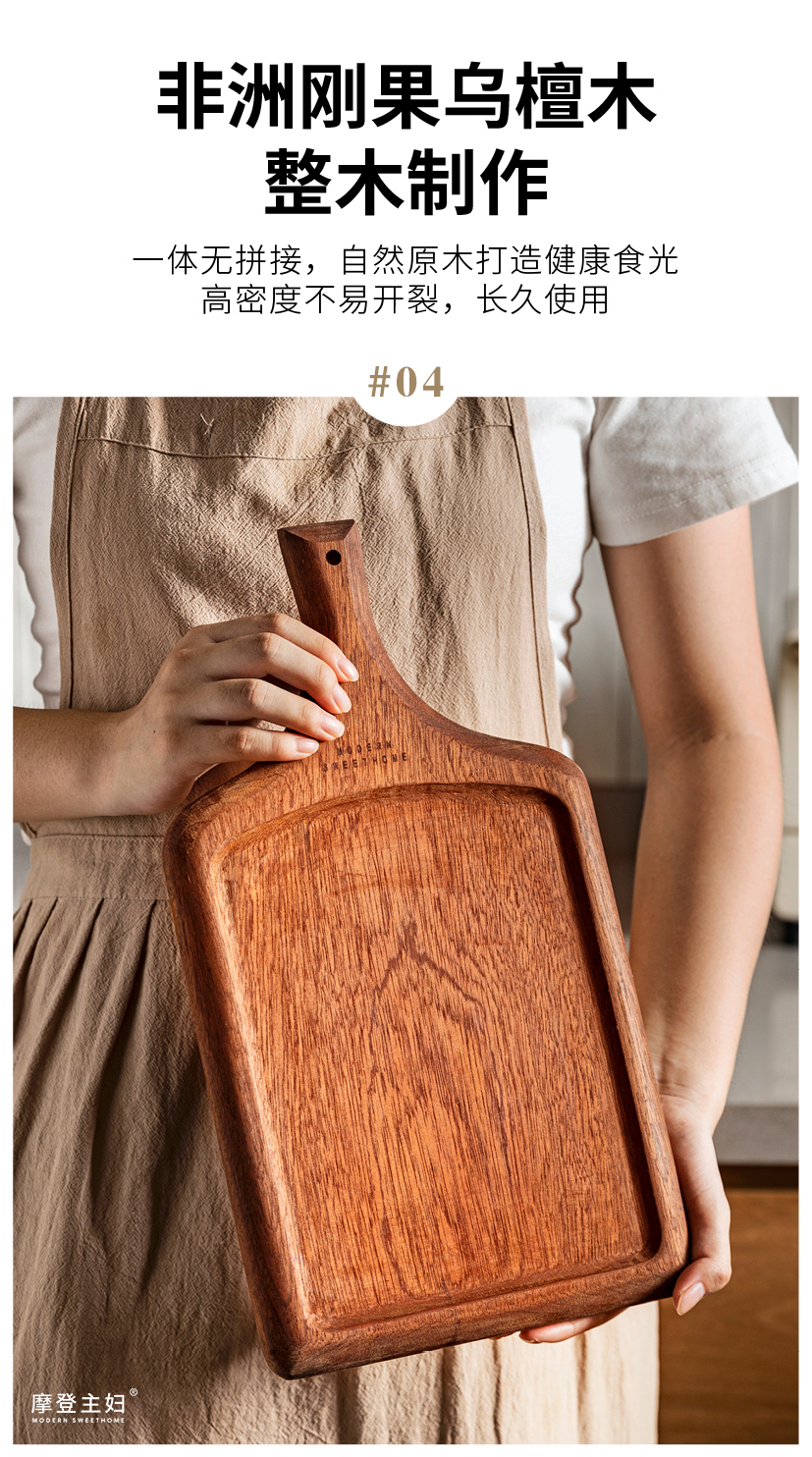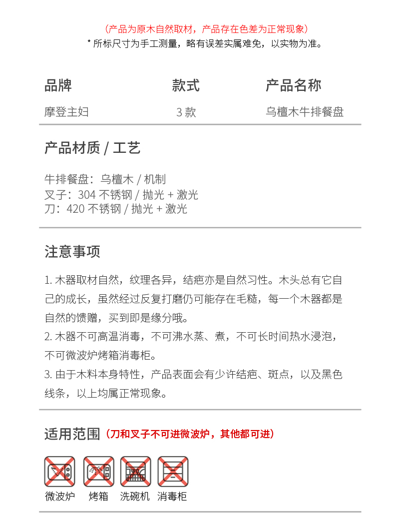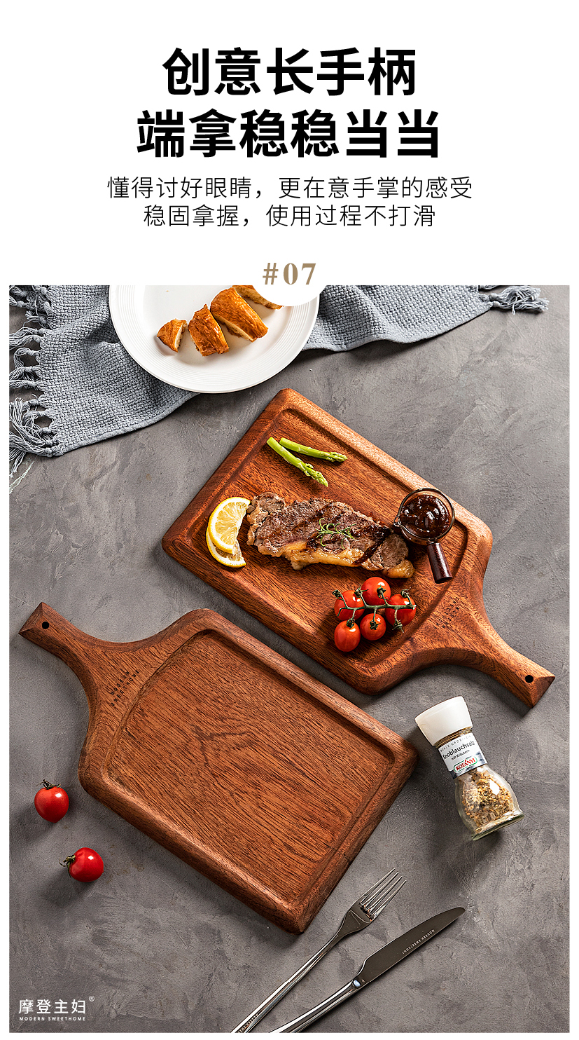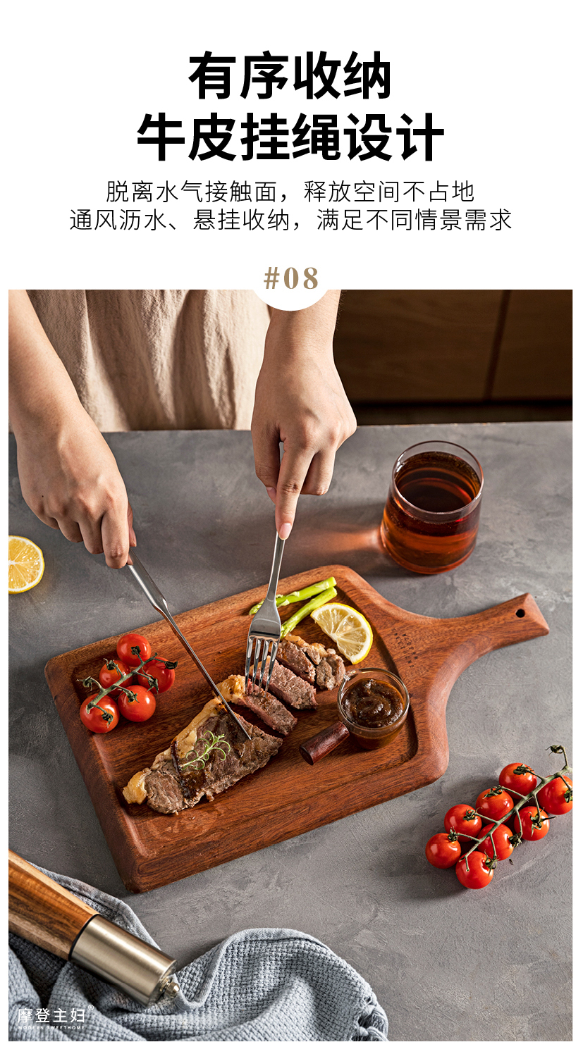 摩登主妇牛排餐盘刀叉三件套牛排盘子西餐盘家用餐具乌檀木质托盘