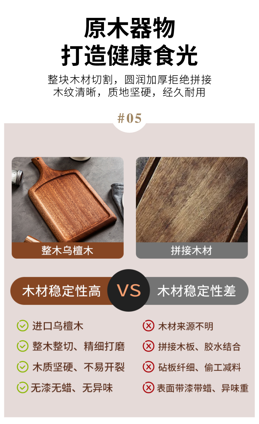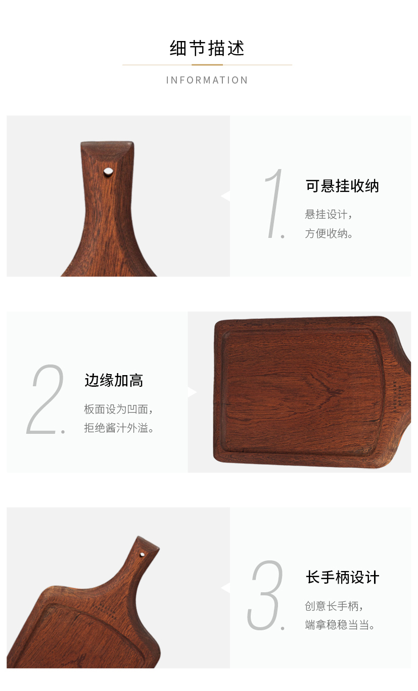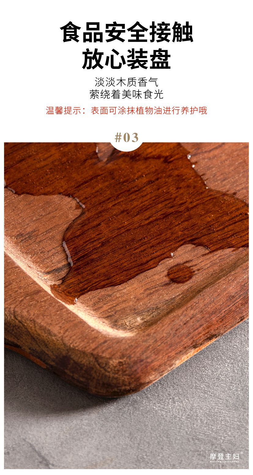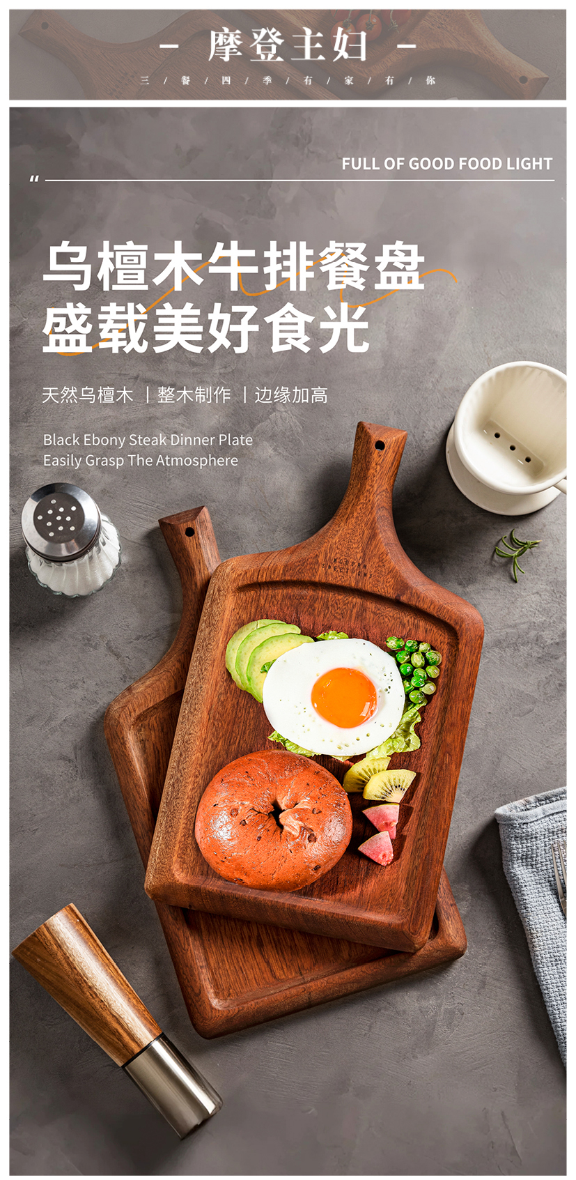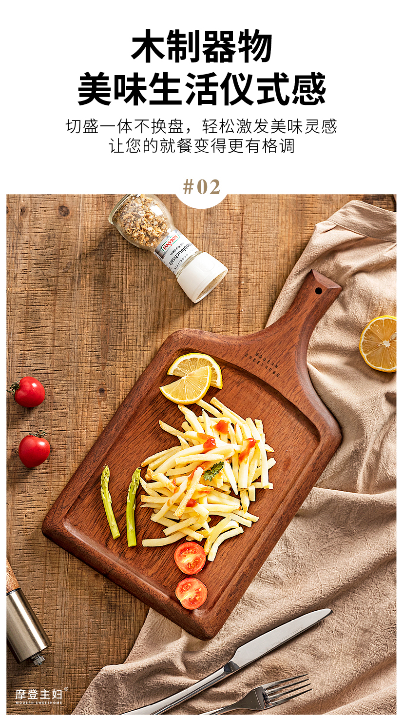 摩登主妇牛排餐盘刀叉三件套牛排盘子西餐盘家用餐具乌檀木质托盘