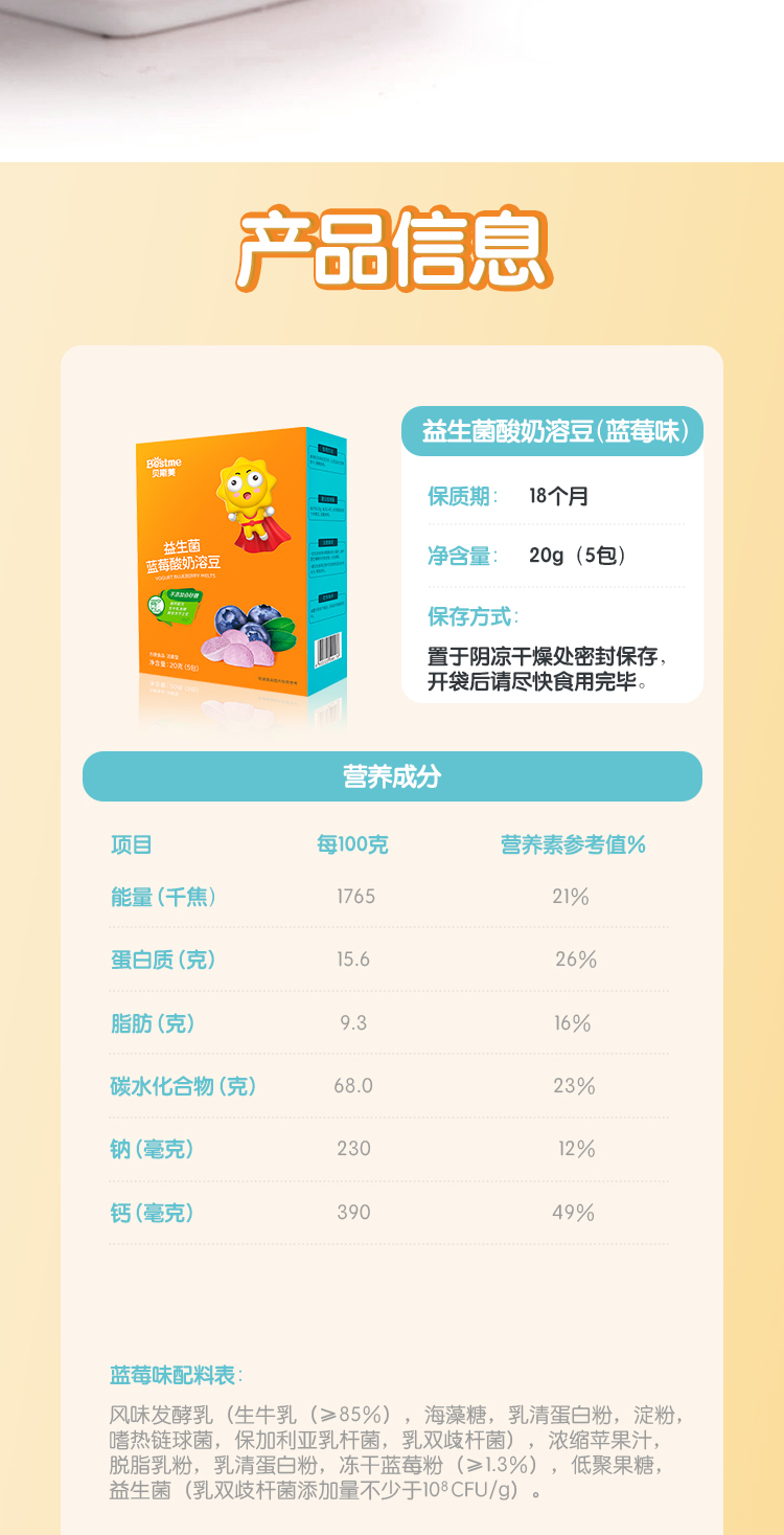 贝斯美益生菌酸奶溶豆20g(蓝莓味)