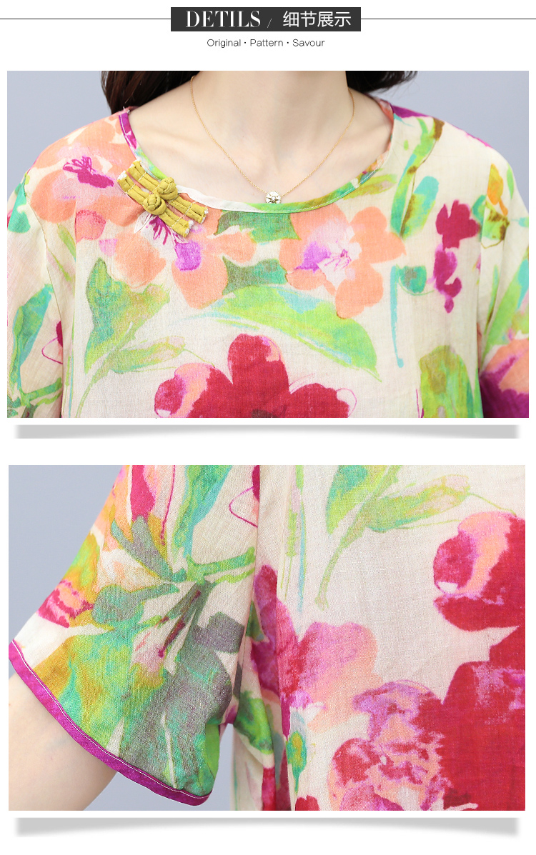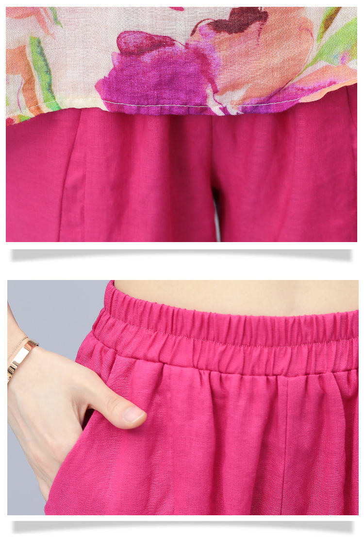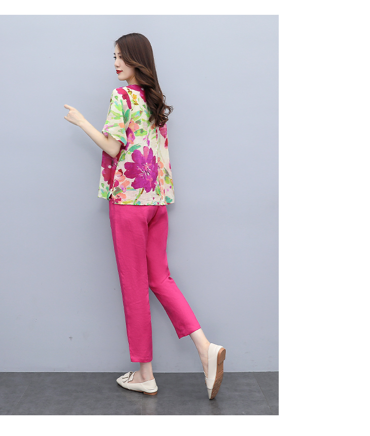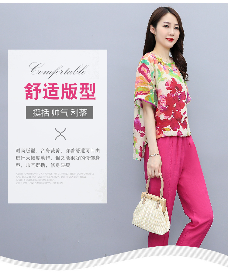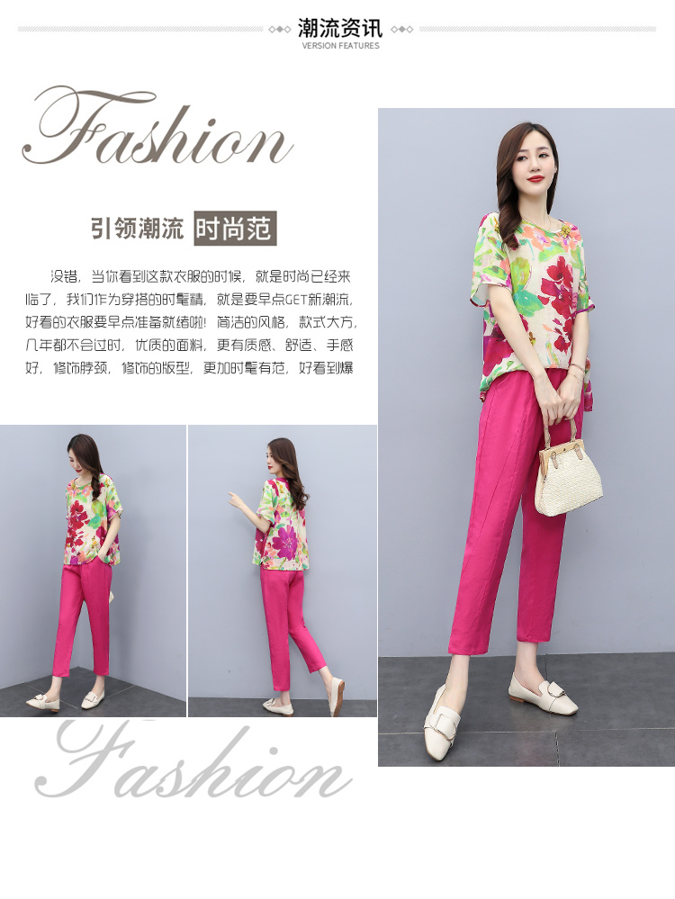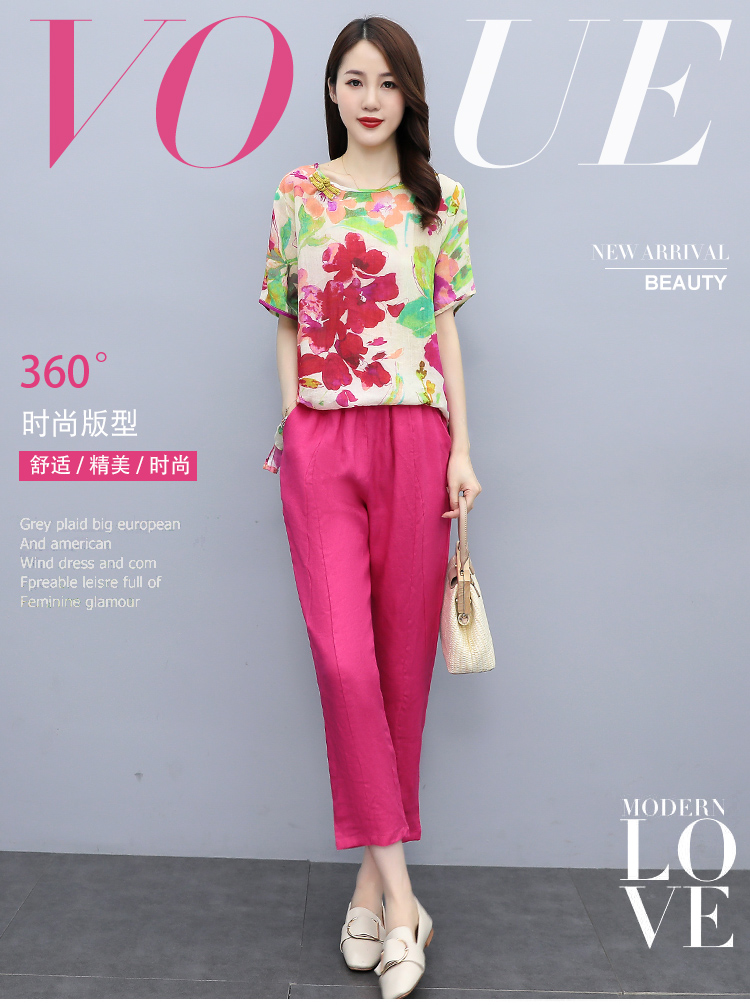 棉麻套装显瘦夏装印花洋气休闲短袖小脚裤两件套 XX2726