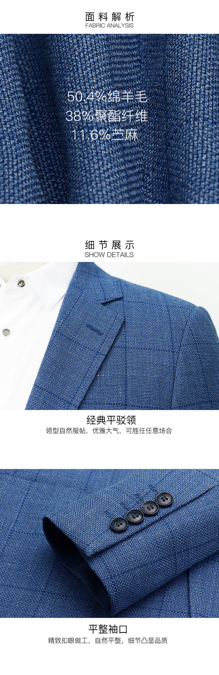 左天奴/ZOTENO 西装男商务正装休闲高档羊毛单西修身外套A2B014