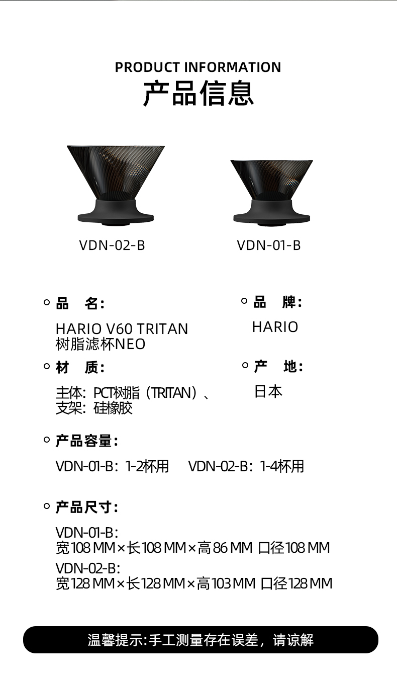 【HARIO】NEO系列树脂滤杯V60手冲咖啡滤杯VDN