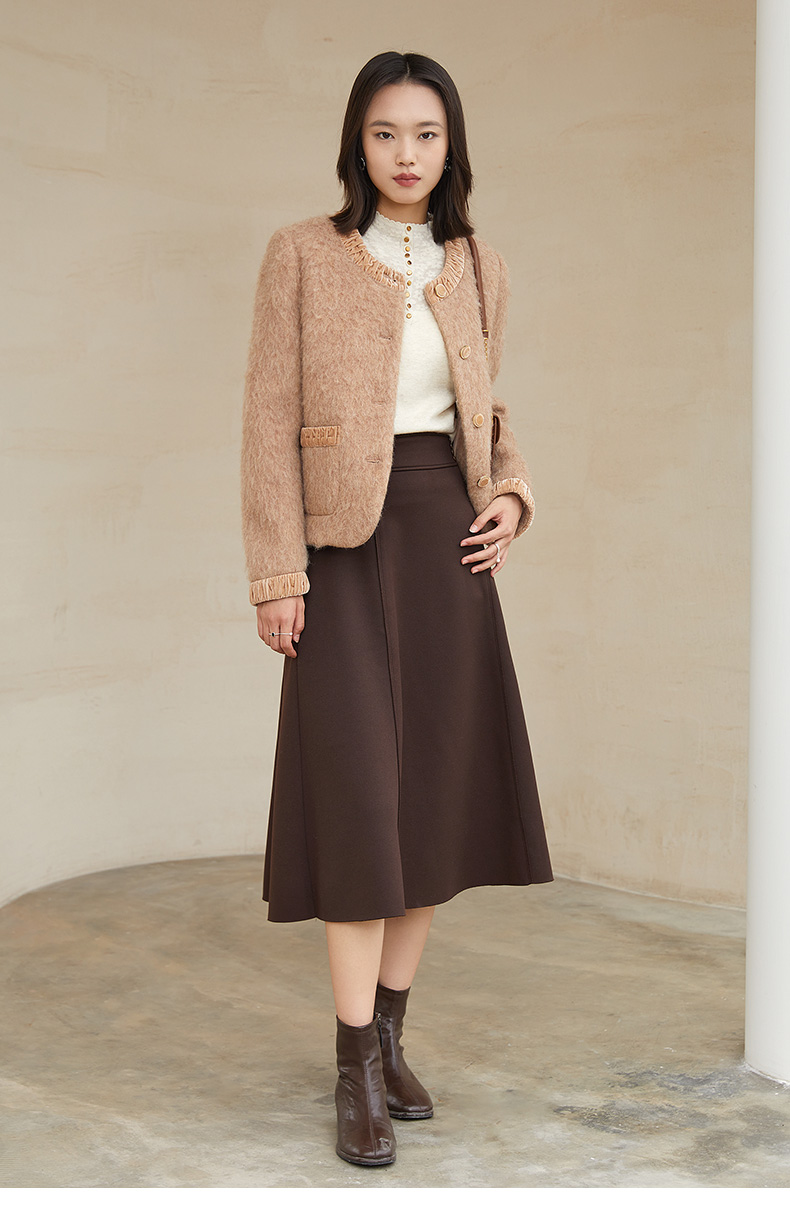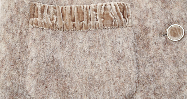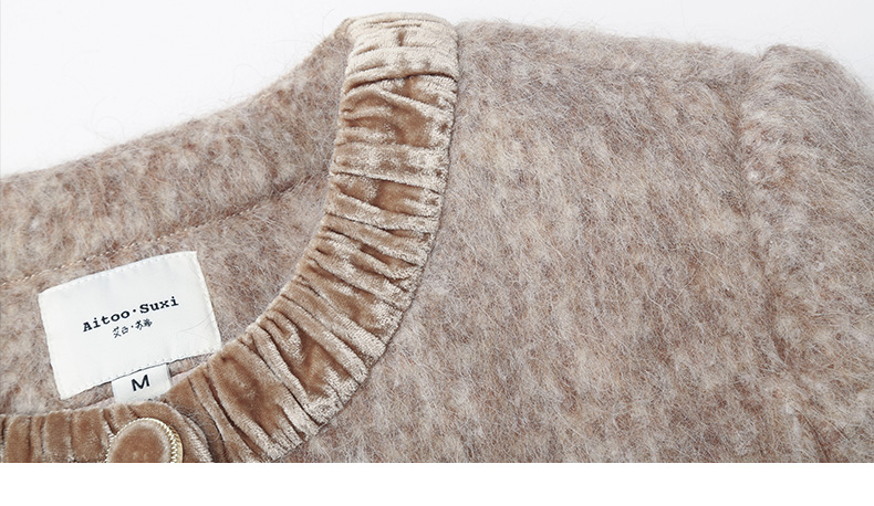 浅燕麦杂色毛呢短款外套 圆领丝绒流苏边单排扣双口袋修身显瘦秋冬法式优雅名媛风上衣