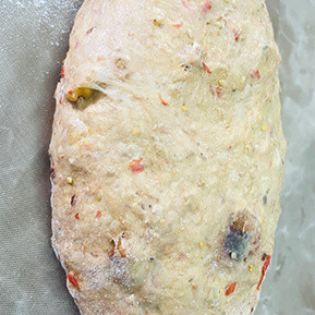 欧包制作过程中没有油,还加入了坚果了和果干,加上自养的中种和鲁班种酵母发面,欧包内部组织疏松,原料天然健康,真是越嚼越香。